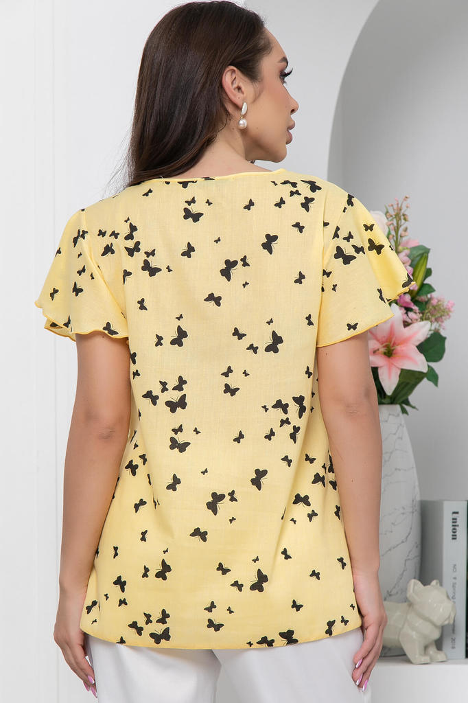 Артикул: Б6776. Ткань: марлёвка. Состав: 80% хлопок, 20% п/э. Цвет: жёлтый Принт: бабочки. Вид застежки: без застёжки. Силуэт: полуприлегающий. Карманы: отсутствуют. Тип горловины: окру... Показать описаниеглый. Длина изделия по спинке: 46/ 70 см, 48/ 71 см, 50/ 72 см, 52/ 73 см, 54/ 74 см, 56/ 75 см. Рост модели: 167 см. Блуза, выполненная из приятной к телу хлопковой ткани украсит собой лёгкий летний сет. Рукав-волан создаёт ощущение лёгкости и невесомости всего образа. В комплект входит пояс из основной ткани. Уход за изделием: бережная стирка до 30 градусов; нельзя отбеливать; деликатный отжим; гладить при t не более 110 С; гладить с изнанки. *Допуск отклонения длины при массовом производстве 1-3 см является нормой.