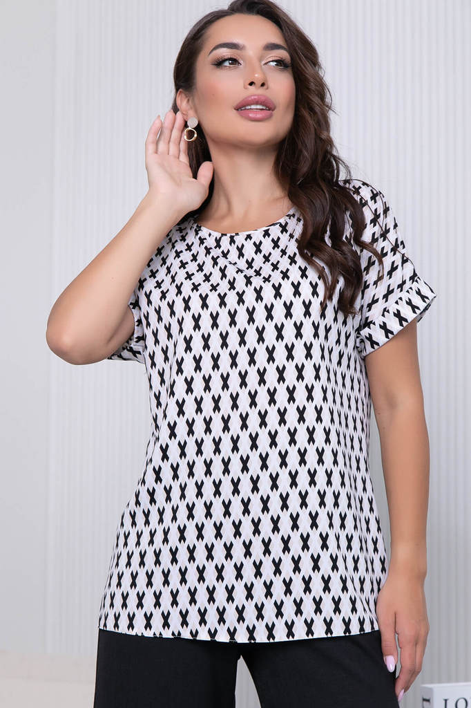Артикул: Б8774. Ткань: штапель. Состав: 100% хлопок. Цвет: черно-белая. Вид застежки: без застёжки. Силуэт: свободный. Карманы: отсутствуют. Тип горловины: округлый. Длина изделия по спинке:... Показать описание 46/ 64 см, 48/ 65 см, 50/ 66 см, 52/ 67 см, 54/ 68 см, 56/ 69 см. Рост модели: 170 см. Стильная и необычная футболка с надписями прекрасно дополнит ваш повседневный образ. Рукав укороченный, со спущенным плечевым швом. Отлично будет смотреться как с джинсами, так и с укороченными брюками, шортами, короткими или длинными юбками. Уход за изделием: ручная стирка до 30 градусов; нельзя отбеливать; деликатный отжим; гладить при t не более 110С; гладить с изнанки. *Допуск отклонения длины при массовом производстве 1-3 см является нормой.