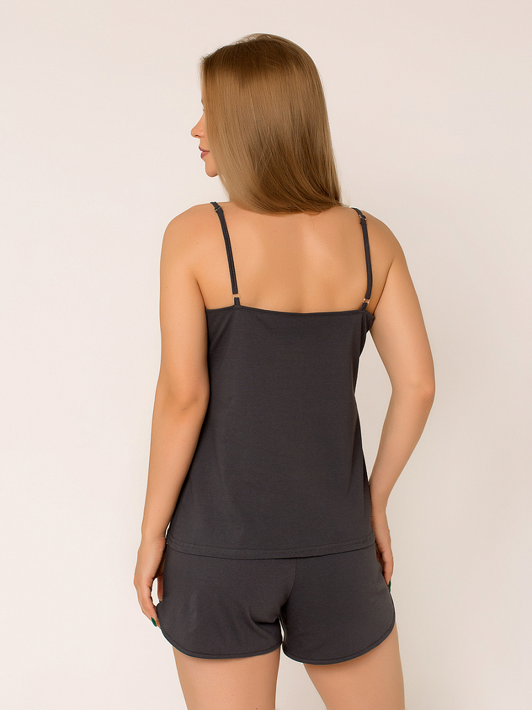 Невероятно красивый и привлекательный женский комплект из мягкого и приятного на ощупь хлопкового полотна глубоких однотонных оттенков. У каждой девушки в гардеробе должен быть такой изящный и лёгкий ... Показать описаниекомплект. Изделие - полуприлегающего силуэта, выполнено из 100% хлопковой ткани и состоит из Топа и Шорт. Топ с регулируемыми бретелями, чашечки которого украшены декоративным эластичным кружевом. Свободные и не стесняющие движений шорты с высокой посадкой прекрасно подойдут для ночного отдыха. Оригинальная конструкция шорт с ассиметричной линией низа привлекает внимание. Вы непременно почувствуете себя в такой женсой пижаме очень привлекательной, а проводить в ней время - одно удовольствие! Характеристики: 100% хлопок премиум; регулируемые бретели; эластичное кружево; чашечки в нахлёст; шорты с высокой посадкой.