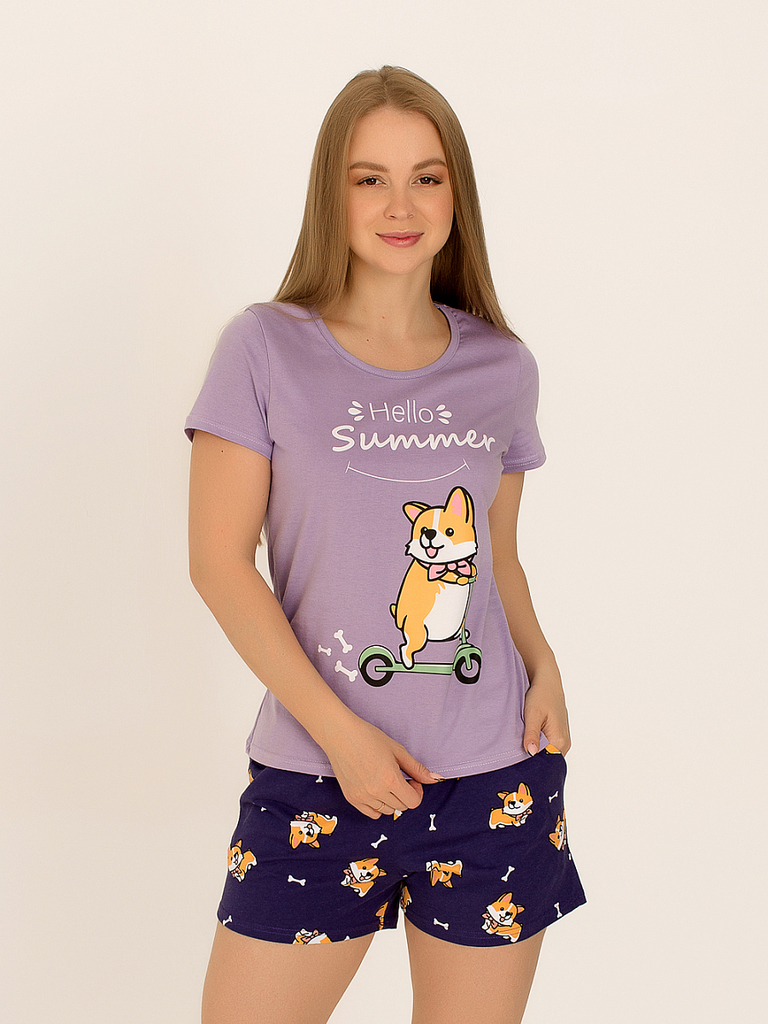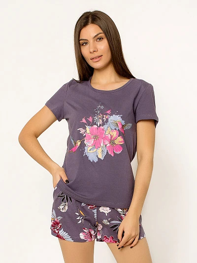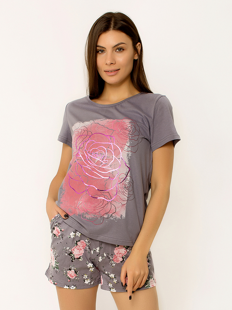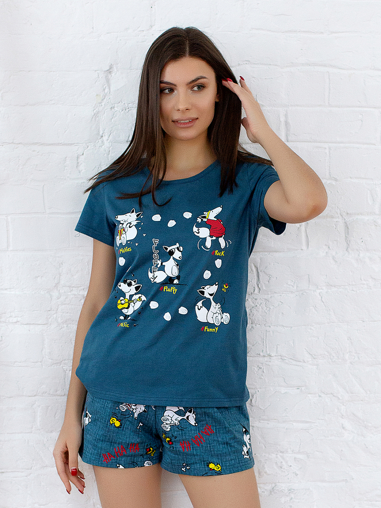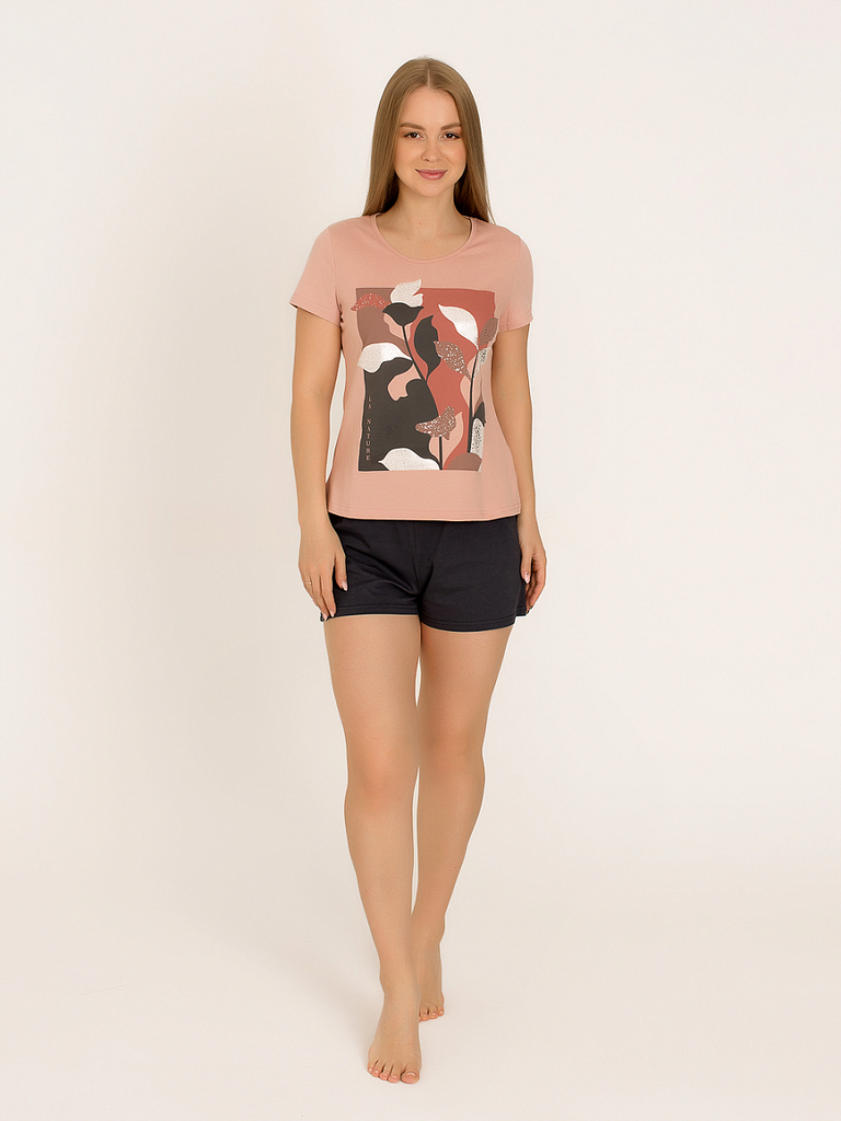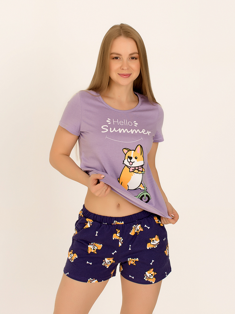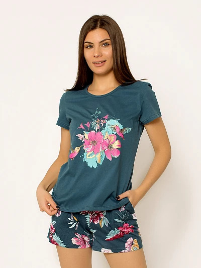 У каждой девушки в гардеробе должна быть такая изящная и лёгкая пижама! Изделие - полуприлегающего силуэта и выполнено из хлопкового набивного плотна. Свободные и не стесняющие движений шорты с высоко... Показать описанией посадкой и футболка прекрасно подойдут для ночного отдыха. Вы непременно почувствуете себя в такой пижаме очень привлекательной, а проводить в ней время - одно удовольствие! Характеристики: 100% хлопок; набивной рисунок; короткий рукав; свободные шорты с высокой посадкой; универсальный дизайн.