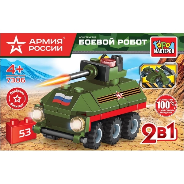 АРМИЯ РОССИИ конструктор колёсный ТАНК 3в1, 128 дет. Город мастеров в кор.16штВопросы по товару