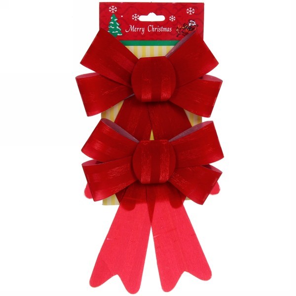 *Бант на ёлку "Красный блеск" 14 см (набор 2 шт)
