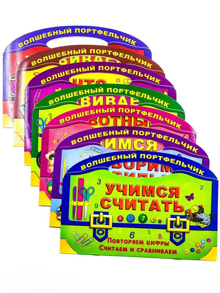 Волшебный портфельчик. Комплект из 7-и книг Комплект представляет собой раскраски и включает в себя упражнения, благодаря которым ваш ребенок научится считать, развивать память, навыкам рисования и ум... Показать описаниеению различать цвета и формы, одна из книг познакомит вашего ребенка с животными планеты Знакомство с героями и раскрашивание персонажей заинтересуют ребенка, а занимательные задания, представленные в игровой форме, подготовят его к школе. Для детей младшего школьного возраста. Книжки с вырубкой.