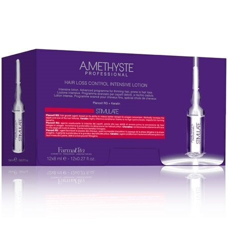 Продвинутая программа для ухода за ослабленными волосами, подвергающимися риску выпадения. Стимулирующий лосьон Amethyste Stimulate Hair Loss Control Intensive для ухода за ослабленными волосами. Форм... Показать описаниеула средства включает в себя Planoxil RG и кератин, которые оказывают стимулирующее воздействие на волосяной покров. Волосы снова становятся густыми, объемными и плотными. Оказывает стимулирующее воздействие на кожу головы. Использовать 1-2 ампулы в неделю для предотвращения выпадения волос, 2-3 ампулы в неделю в качестве поддерживающей программы и 3-4 ампулы в неделю в качестве интенсивной программы. После 8-11 недель интенсивного курса перейти к поддерживающей программе. Является агентом роста волос, обладает способностью вызывать ранние преобразования Телогена (фаза покоя волоса ) в Анаген (фаза активного роста волоса). Заметно увеличивает глубину и размер волосяных фолликулов. Чрезвычайно эффективный кондиционер за счет содержания цистина. Создает защитный пленкообразующий эффект. Обеспечивает длительный эффект и придает естественный блеск. Не содержит синтетических красителей, веществ животного происхождения и ГМО