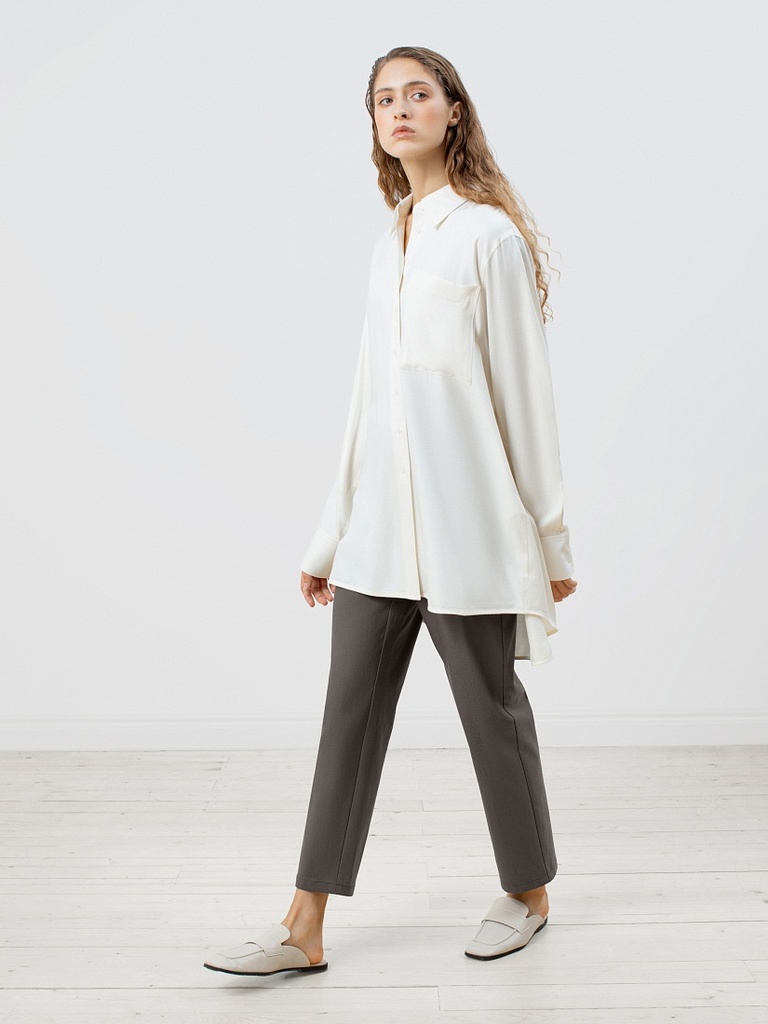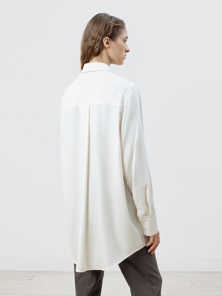 Покрой/Силуэт: свободный Основная ткань: вискоза 100% Тип воротника: отложной Тип рукава: рубашечный Длина рукава (170 см): 59 Ширина рукава (охват плеча): 42 Ширина рукава (по низу): 22 Длина изделия... Показать описание (170 см): 75 Обхват груди: 130 Обхват бедер: 131 Стиль: smart casual Вид застежки: пуговицы Рост модели на фото - 175 см. Цвет одежды на фотографиях может незначительно отличаться от оригинального. Артикул: Классическая рубашка из натуральной вискозы свободного силуэта с отложным воротником и рубашечным рукавом полной длины на манжете.