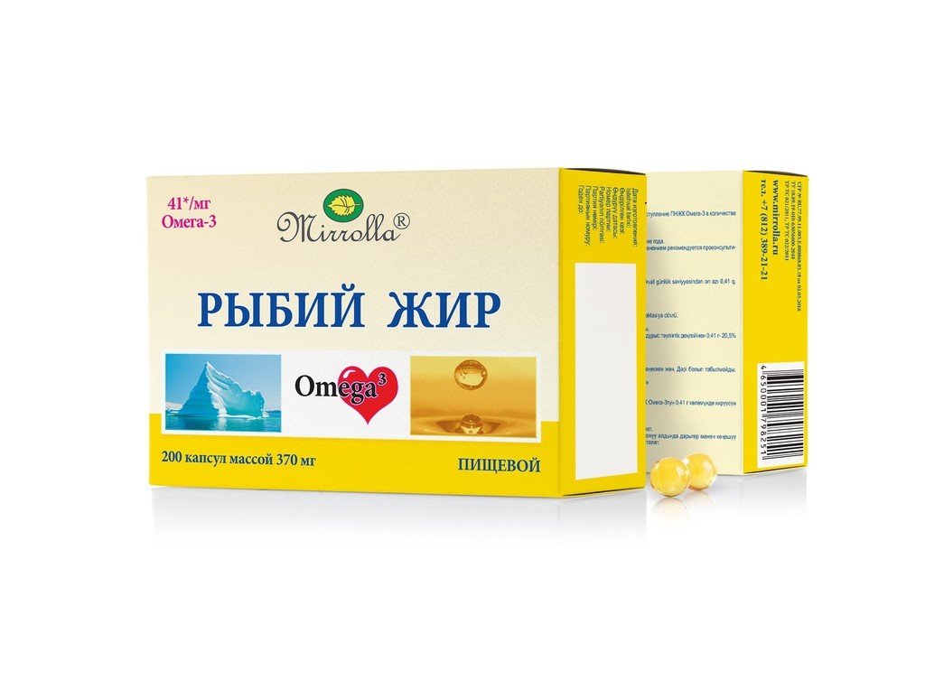 Иммуностимуляция. Укрепление функций организма. Продукт производится из жира норвежского лосося и отвечает европейскому стандарту качества и безопасности. Дополнительный источник полиненасыщенных жирн... Показать описаниеых кислот Омега-3. Форма выпуска: капсулы массой 370 мг. Пищевая ценность на 100 г продукта: жиры – 80 г (из них ПНЖК Омега-3, не менее – 11 г), белки – 14 г. Энергетическая ценность на 100 г продукта: 780 ккал/3200 кДж. Продолжительность приема: 4-6 недель. При необходимости прием можно повторить. Возможны повторные приемы в течение года. Противопоказания: индивидуальная непереносимость компонентов продукта, беременность, кормление грудью. Перед применением рекомендуется проконсультироваться с врачом. Срок годности: 2 года. СОСТАВ: жир пищевой из рыбы, желатин пищевой, влагоудерживающий агент – глицерин, антиокислитель – лимонная кислота. СПОСОБ ПРИМЕНЕНИЯ: взрослым и детям старше 14 лет во время еды по 5 капсул 2 раза в день. Не является лекарством.