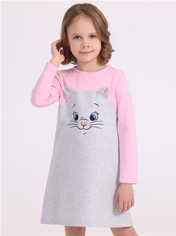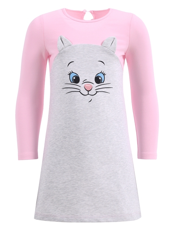 Платье для девочки выполнено из теплого хлопкового полотна с лайкрой. Изделие с длинными рукавами, на кокетке. Веселый принт и нашивные элементы имитируют мордочку зверушки. Отличный наряд для маленьк... Показать описаниеих принцесс! Уход: только машинная стирка (руками не стирать!) при температуре 40 градусов, без предварительного замачивания. Изделия с печатью и декором перед стиркой необходимо вывернуть на изнаночную сторону. Состав: футер / хлопок 68% + ПЭ 27% + лайкра 5%.