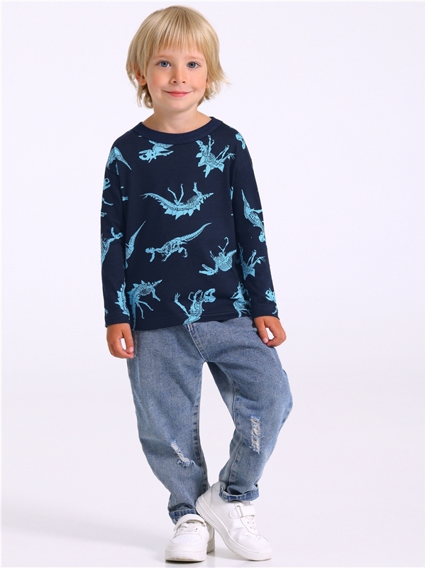 Лонгслив для мальчика выполнен из кулира – легкого хлопкового плотна. Изделие прямого силуэта и свободного кроя, с длинными рукавами со спущенной линией плеча, вырез горловины обработан эластичной бей... Показать описаниекой из полотна компаньона. Украшен стильным принтом. Уход: только машинная стирка (руками не стирать!) при температуре 40 градусов, без предварительного замачивания. Изделия с печатью перед стиркой необходимо вывернуть на изнаночную сторону. Состав: кулир / хлопок 100%.
