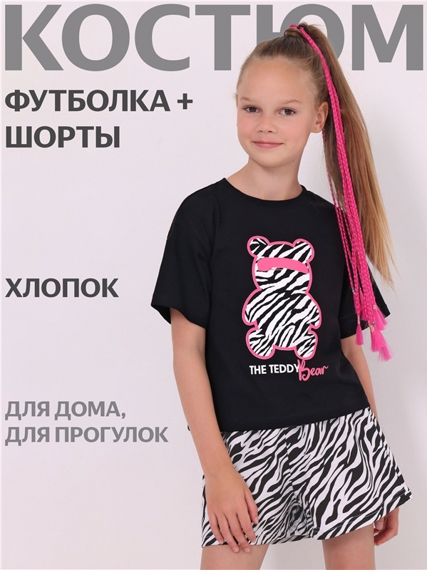 Комплект для девочки из футболки и леггинсов выполнен из кулира - легкого хлопкового полотна. Оверсайз футболка с короткими рукавами со спущенным плечом, украшена стильным принтом. Леггинсы на удобном... Показать описание эластичном поясе. Отличный выбор на каждый день! Уход: только машинная стирка (руками не стирать!) при температуре 40 градусов, без предварительного замачивания. Изделия с печатью и декором перед стиркой необходимо вывернуть на изнаночную сторону. Состав: кулир / хлопок 100%.
