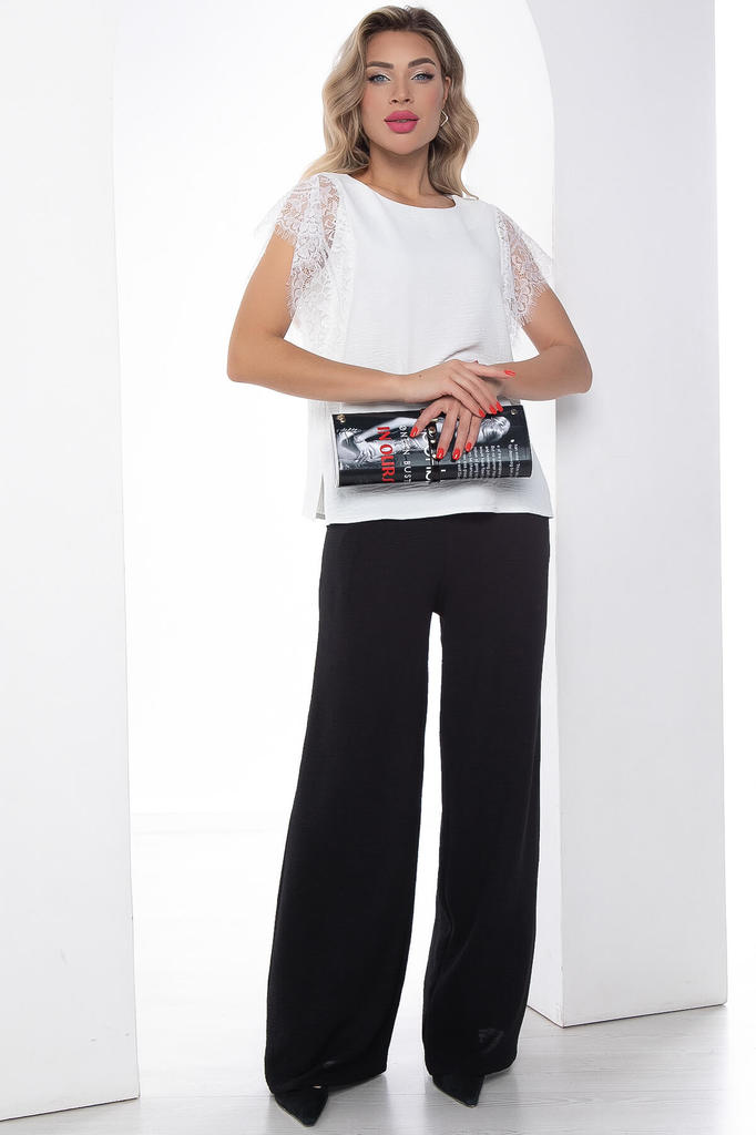 Артикул: К9077. Ткань: плательная "Прада". Состав: 95% п/э, 5% эластан. Цвет: белый. Вид застежки: пуговицы на рубашке. Силуэт: свободный. Карманы: есть. Длина верха по спинке: 44/ 51 с... Показать описанием, 46/ 52 см, 48/ 53 см, 50/ 54 см, 52/ 55 см, 54/ 56 см. Длина брюк с учетом резинки: 44/ 101 см, 46/ 106 см, 48/ 106 см, 50/ 107 см, 52/ 107 см, 54/ 107 см. Рост модели: 168 см. Костюм из лёгкой ткани, состоящий из свободной рубашки и брюк, идеально подойдёт для летнего расслабленного образа. Свободный крой не сковывает движений и дарит комфорт. Карманы в боковых швах у брюк. Рубашка застёгивается на пуговицы. Уход за изделием: бережная стирка до 30 градусов; нельзя отбеливать; деликатный отжим; гладить при t не более 110 С; гладить с изнанки. *Допуск отклонения длины при массовом производстве 1-3 см является нормой.