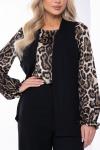 Артикул: К7183. Ткань: костюмная "Прада". Состав: 95% п/э, 5% эластан, брюки - 65% п/э, 30% вискоза, 5% эластан. Цвет: чёрный, зелёный. Принт: анималистический. Вид застежки: отсутствует. Си... Показать описаниелуэт: прямой. Карманы: отсутствуют. Длина изделия блуза по спинке: 44-46/ 65 см, 48-50/ 66 см, 52-54/ 67 см. Длина брюк с учётом резинки: 46-56/ 97 см. Рост модели: 168 см. Костюм-двойка, состоящий из зауженных брюк с высокой посадкой на резинке и блузы свободного кроя. Преимущество комплекта в том, что вы сможете самостоятельно носить как блузу, так и брюки. В повседневном образе смело сочетайте с лоферами или ботинками, а если нужен более официальный образ, с туфлями на каблуке. Уход за изделием: бережная стирка до 30 градусов; нельзя отбеливать; деликатный отжим; гладить при t не более 110 С; гладить с изнанки. *Допуск отклонения длины при массовом производстве 1-3 см является нормой.