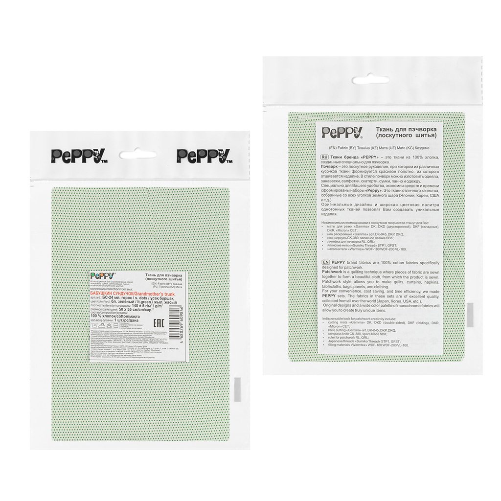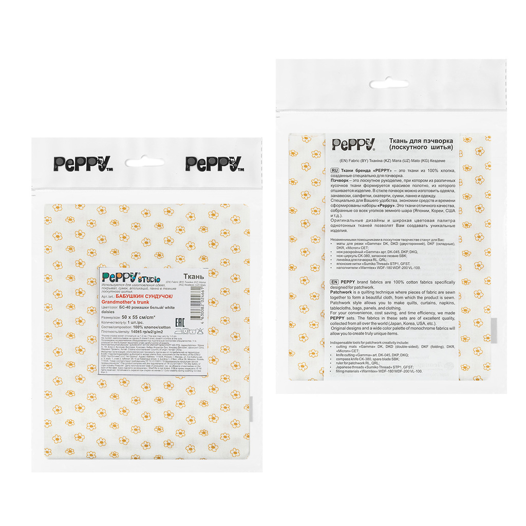 Ткань для пэчворка PEPPY БАБУШКИН СУНДУЧОК ФАСОВКА 50 x 55 см 140 г/кв.м ± 5 100\% хлопок