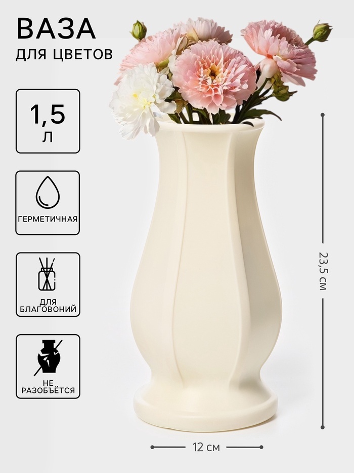 Ваза для цветов, пластик, 1.5 л, 12?8.5?23.5 см, белая Вопросы по товару