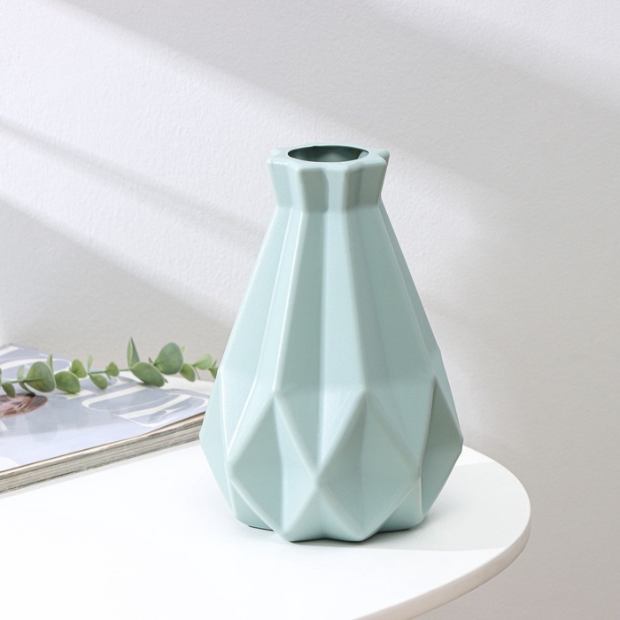 Ваза для цветов выполнена в современном дизайне, что позволит ей вписаться в любое помещение, стать украшением интерьера. Преимущества: * Ваза отлично подходит, как для декора домашнего интерьера, так... Показать описание и для офиса, ресторанов и других заведений, также хорошо смотрится на даче и в загордных домах, поставив на стол или подоконник с видом на сад из окна. * С помощью этой вазы можно замечательно оформить цветочную композицию и букеты. Подходит для сухоцветов и живых цветов. * Ваза маленькая легкая и не бьется, это отличное решение, если в доме есть животные или дети, пожилые люди, при падении не повредит напольное покрытие и исключит опасные осколки, что повышает безопасность ваших близких и домашних животных. * Хорошая замена для вазы из стекла и керамики для искусственных цветов. * Ваза легко очищается при необходимости достаточно просто сполоснуть ее тёплой водой. * Пластик не оставляет никаких царапин и не загрязняет поверхности. * Декоративная настольная ваза выполнена из прочного и легкого пластика, который безопасен и не имеет запаха. Дополнительно Для размещения более тяжелых цветов, букетов поместите груз внутри вазы в виде декоративных камней или других утяжеляющих предметов.
