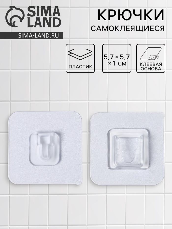 Набор самоклеящихся крючков Доляна Simple look, 2 шт., 8?4?6 смНабор самоклеящихся крючков Доляна Simple look, 2 шт., 8?4?6 смНабор самоклеящихся крючков Доляна Simple look, 2 шт., 8?4?6 см
