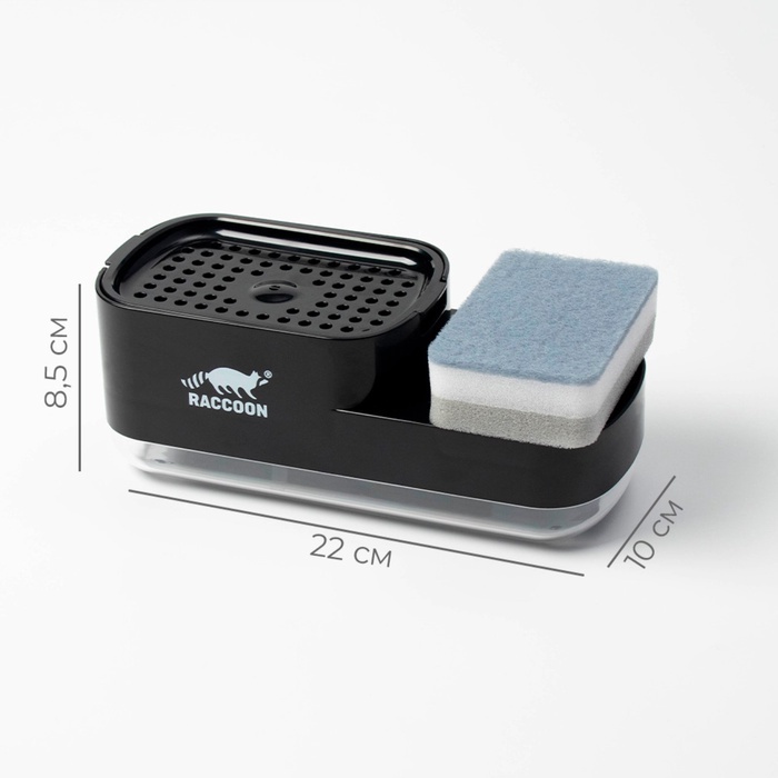 Дозатор для моющего средства с подставкой для губки Raccoon, 550 мл, губка в комплекте, цвет чёрныйДозатор для моющего средства с подставкой для губки Raccoon, 550 мл, губка в комплекте, цвет чёрныйДозатор для моющего средства с подставкой для губки Raccoon, 550 мл, губка в комплекте, цвет чёрный