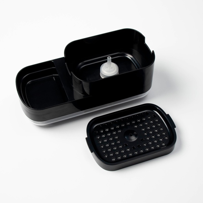 Дозатор для моющего средства с подставкой для губки Raccoon, 550 мл, губка в комплекте, цвет чёрный Вопросы по товару
