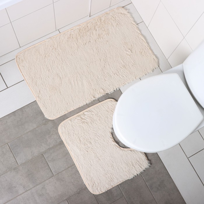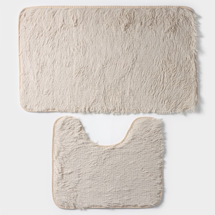 Набор ковриков для ванной и туалета Доляна «Пушистик», 2 шт., 40?50, 50?80 см бежевый