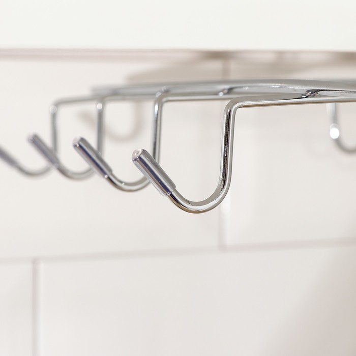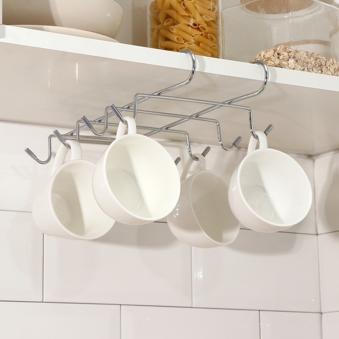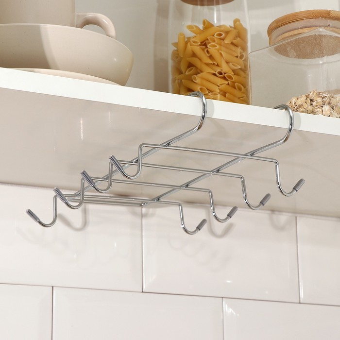 Держатель для кружек подвесной Доляна, на 8 предметов, 27.5?20?7.5 см, на толщину полки 3.5 см, хромированный