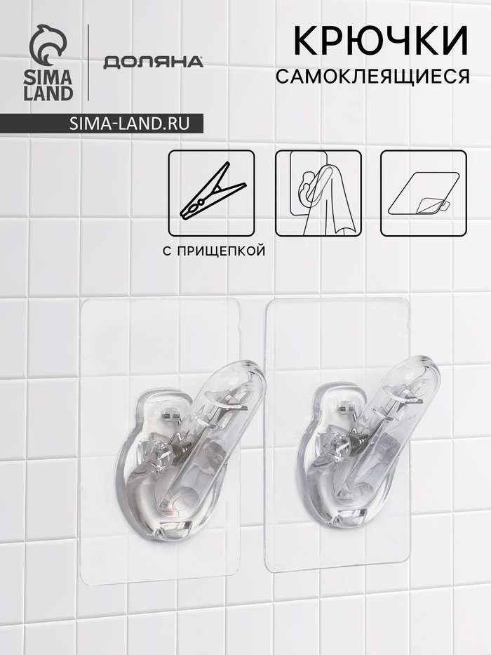 Набор самоклеящихся крючков Доляна Simple look, 2 шт., 8?4?6 см Вопросы по товару