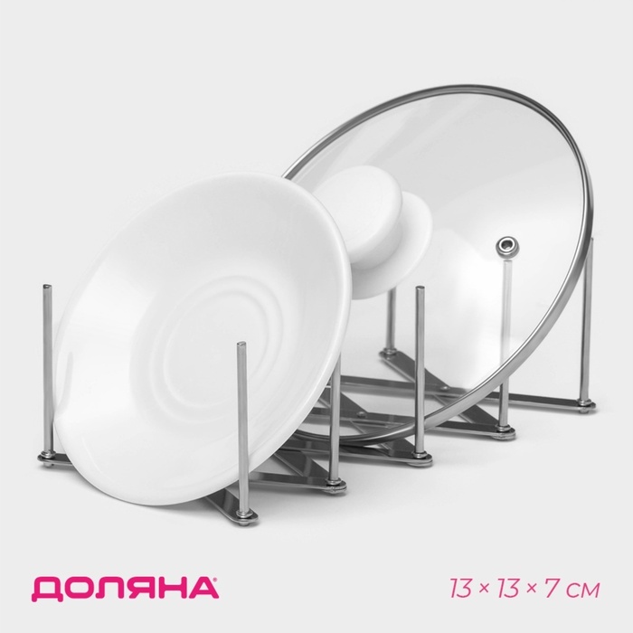 Держатель кухонный Доляна для крышек, сковород, тарелок, нержавеющая сталь, 4 деления Вопросы по товару