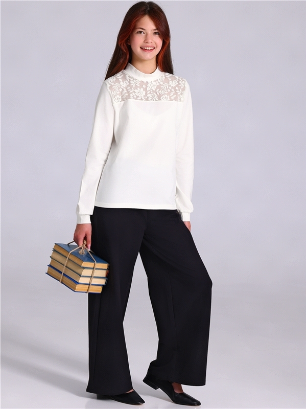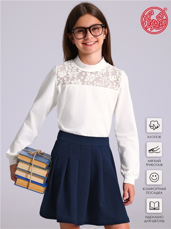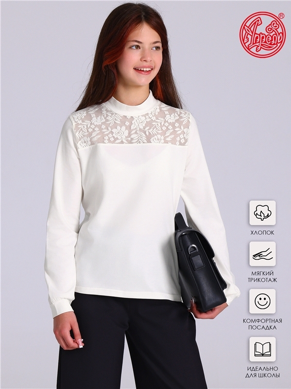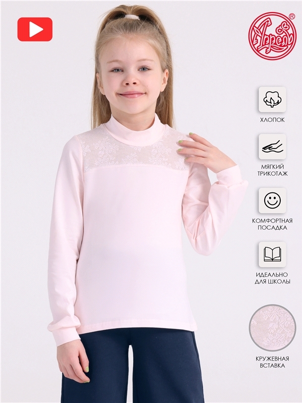 Водолазка для девочки выполнена из кулира - легкого хлопкового полотна с лайкрой. Изделие с длинными рукавами на манжетах:украшено кокеткой из тонкого ажурного полотна. Незаменимый предмет гардероба д... Показать описаниеля юных школьниц! Уход: только машинная стирка (руками не стирать!) при температуре 40 градусов:без предварительного замачивания. Состав: кулир с лайкрой / хлопок 92% + лайкра 8%.