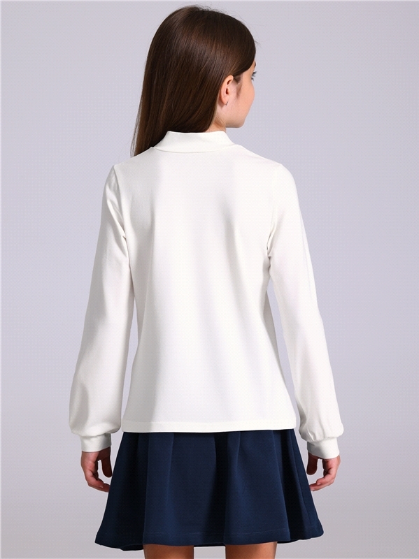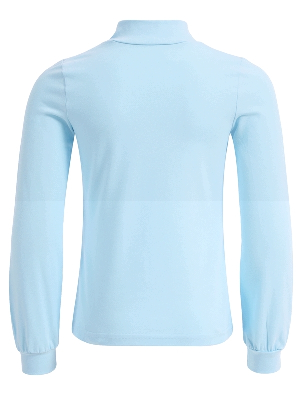 Водолазка для девочки выполнена из кулира - легкого хлопкового полотна с лайкрой. Изделие полуприлегающего силуэта с воротником-стойкой украшенным оборкой:длинный рукав со сборкой на манжете:застежка ... Показать описаниена пуговицу по спинке. Отличный выбор для школьницы на каждый день! Уход: только машинная стирка (руками не стирать!) при температуре 40 градусов:без предварительного замачивания. Состав: кулир с лайкрой / хлопок 92% + лайкра 8%.