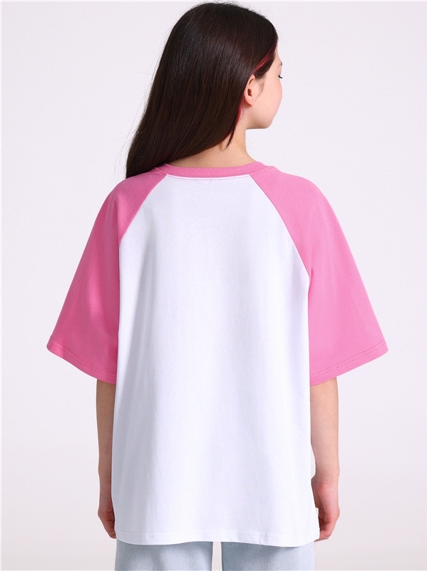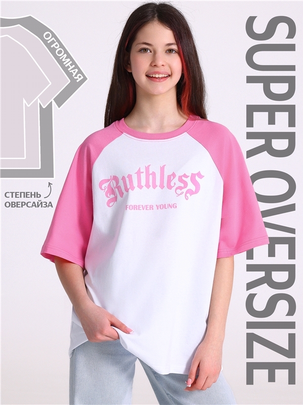 Оверсайз футболка для девочки выполнена из кулира – легкого хлопкового полотна. Изделие прямого покроя:с короткими рукавами:со спущенной линией плеча:Круглый вырез горловины обработан эластичной бейко... Показать описанией из полотна компаньона:украшено печатью. Уход: только машинная стирка (руками не стирать!) при температуре 40 градусов:без предварительного замачивания. Изделия с печатью и декором перед стиркой необходимо вывернуть на изнаночную сторону. Состав: кулир / хлопок 100%.