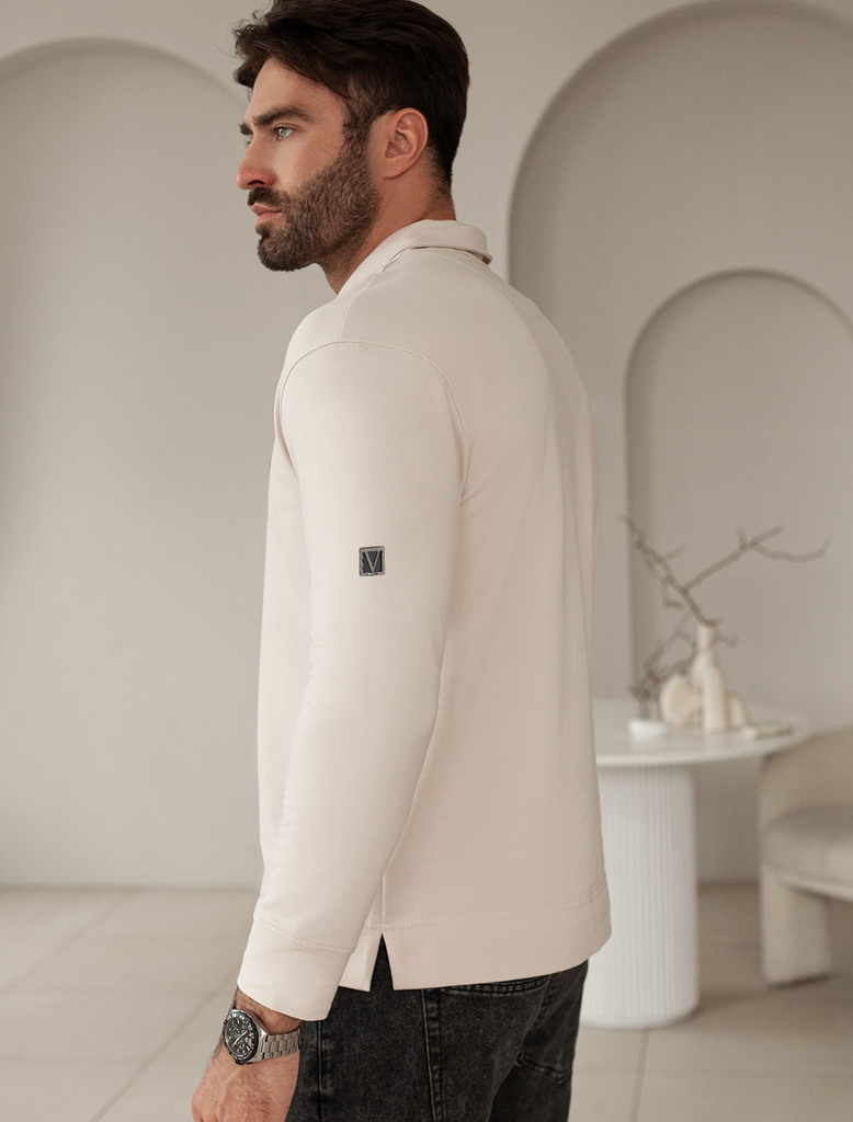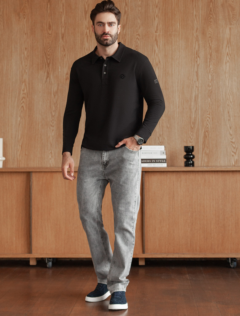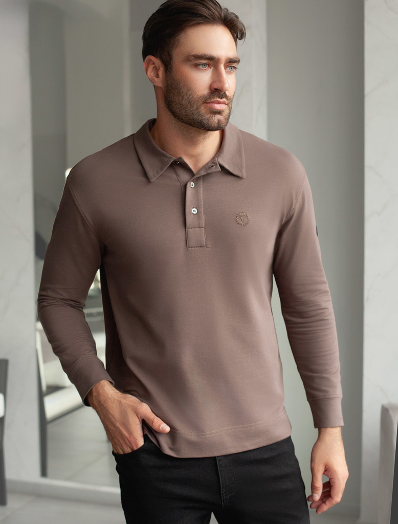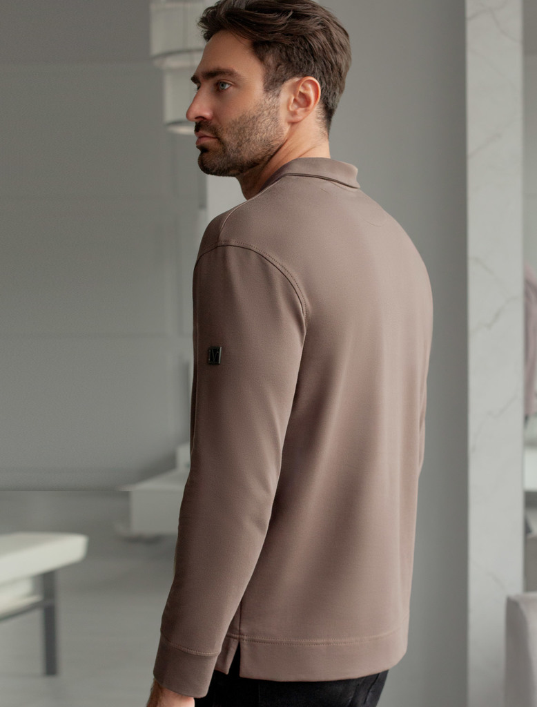 Джемпер-поло из эластичного футера с застежкой на пуговицыДжемпер-поло из эластичного футера с застежкой на пуговицыДжемпер-поло из эластичного футера с застежкой на пуговицы