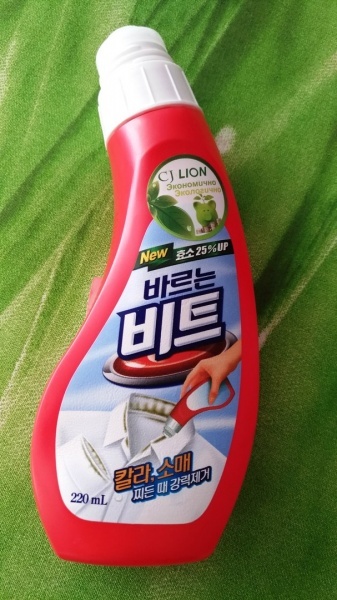 CJ Lion Средство для удаления пятен с воротничков и манжет Beat 220 мл в состав включен уникальный компонент Нонион, разлагающий и выводящий жиры. Компоненты входящие в состав, уничтожают неприятный з... Показать описаниеапах жиров. Предназначен для удаления загрязнений на воротничках и манжетах, а так же для удаления пятен на одежде, белье и обуви непосредственно перед стиркой. Не повреждает структуру ткани. Способ применения: Соблюдайте условия ухода, указанные на ярлыке одежды. Нанесите непосредственно на загрязнения, через 1-5 минут стирайте, как обычно (можно использовать стиральный порошок и кислородный отбеливатель) не оставляйте надолго данное средство на ткани. Не используйте для шелка, шерсти, кожи. При первом использовании, протестируйте средство на незаметном участке одежды. Меры предосторожности: используйте только по назначению. Храните в недоступном для детей месте. После использования сохраняйте герметичность, не допускайте попадания воды и прочих веществ внутрь емкости.