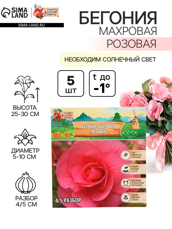 Бегония махровая «Розовая», луковицы, р-р 4/5, 5 шт.Вопросы по товару