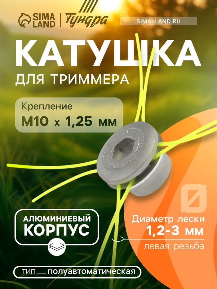 Надежность в каждой детали! Катушка для триммера ТУНДРА – универсальное решение для обрезки травы и мелких веток. Алюминиевый корпус, левая резьба М10 х 1.25 мм и комплект адаптеров делают этот инстру... Показать описаниемент незаменимым для работы на участке. * Прочный алюминиевый корпус: Устойчив к механическим нагрузкам и коррозии. Не деформируется даже при длительной эксплуатации, что гарантирует долгий срок службы. * Левая резьба М10 х 1.25 мм: Обеспечивает надежную фиксацию на триммере. Предотвращает самопроизвольное откручивание во время работы, что повышает безопасность и удобство использования. * Поддержка лески диаметром 2-2.4 мм: Идеально подходит для обрезки травы, кустарников и других мелких растений. Леска легко заменяется, что экономит время и усилия. * Комплект с адаптерами: Включает дополнительные элементы для совместимости с различными моделями триммеров. Это делает катушку универсальной и удобной для использования в разных условиях. Почему выбирают катушку ТУНДРА: Это проверенное решение для тех, кто ценит прочность, удобство и универсальность. Инструмент не подводит в ответственные моменты и помогает выполнять работу быстро и качественно. Если нужна надежная катушка для триммера – это ваш выбор.