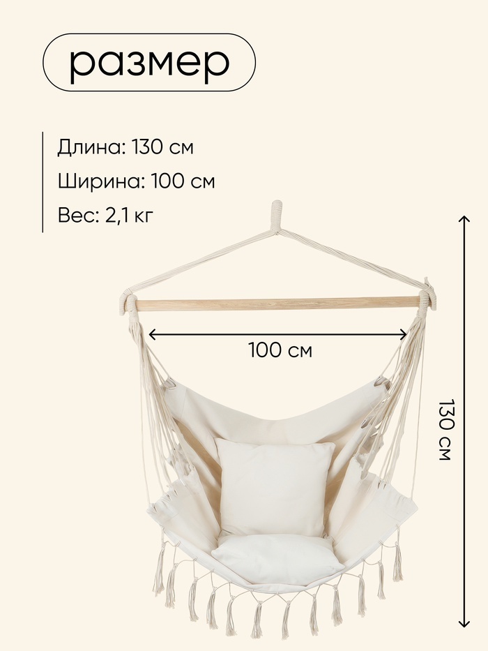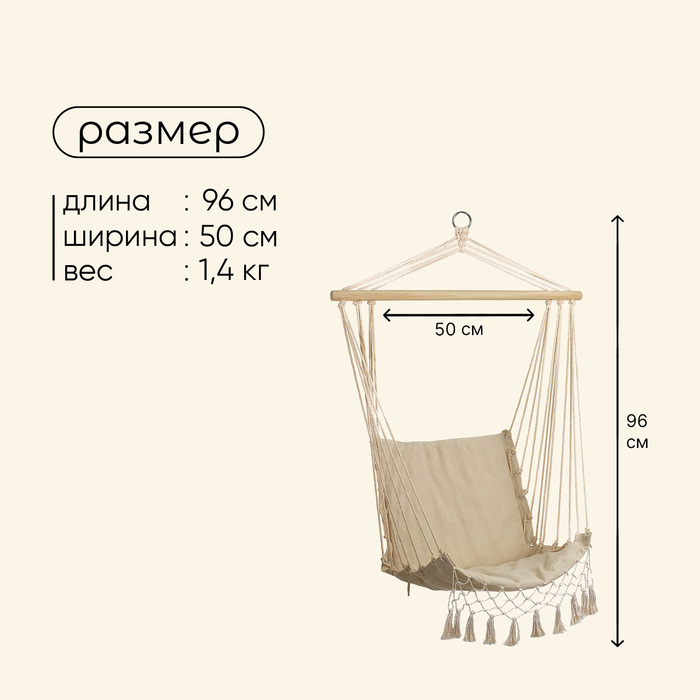 Гамак-кресло maclay, подвесное, плетёное, 60?80 см, бежевоеВопросы по товару