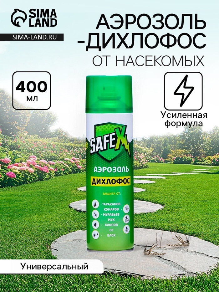 Аэрозоль дихлофос от комаров, клопов, тараканов и других насекомых SAFEX, 400 млВопросы по товару