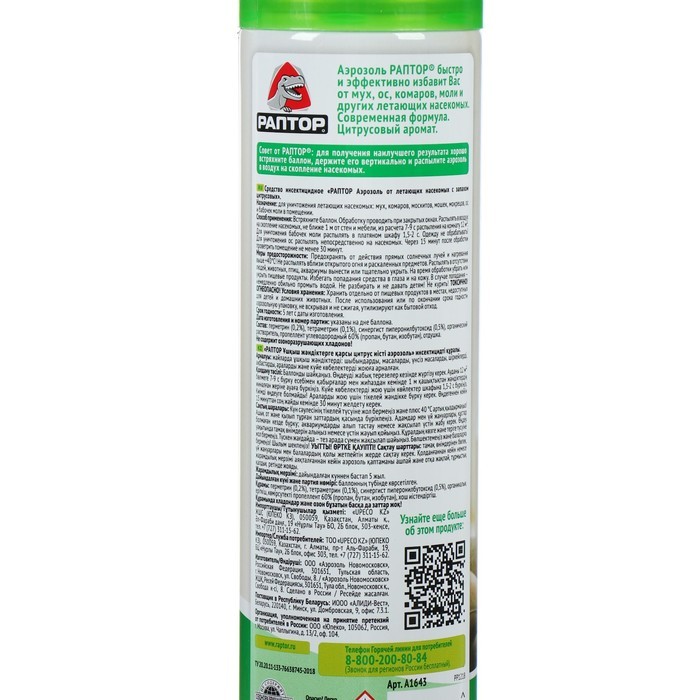 Аэрозоль от насекомых «Раптор», от летающих насекомых, с запахом цитрусовых, 275 млВопросы по товару