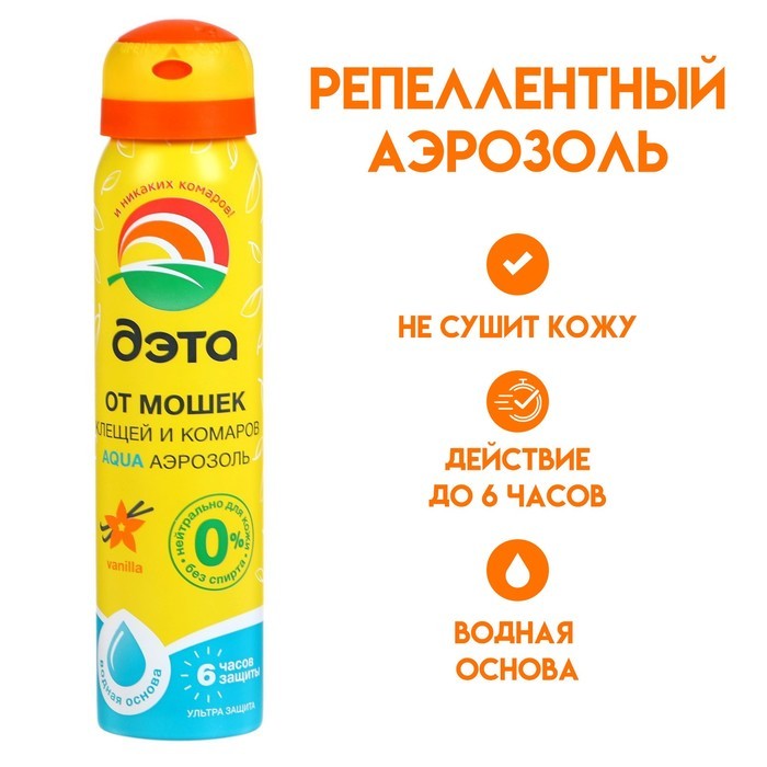 Аэрозоль Репеллент «ДЭТА АКВА», от мошек, клещей и комаров, флакон, 100 млВопросы по товару