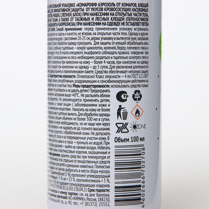 Аэрозоль Репеллент «Комарофф», от комаров, клещей и мошек, 3 в 1, 100 млВопросы по товару