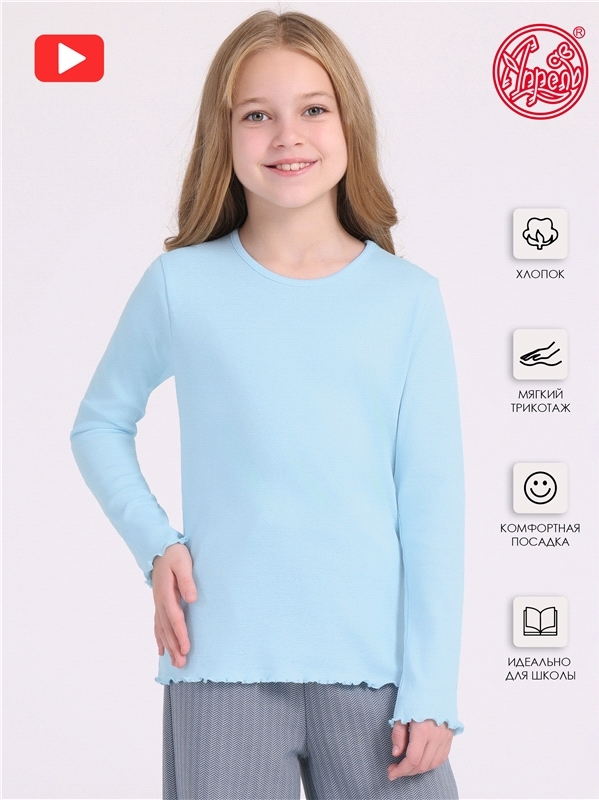 Лонгслив для девочки выполнен из эластичного хлопкового полотна. Изделие с длинными рукавами. Отличный вариант для школьных занятий! Уход: только машинная стирка (руками не стирать!) при температуре 4... Показать описание0 градусов:без предварительного замачивания.Состав: ластик / хлопок 100%.