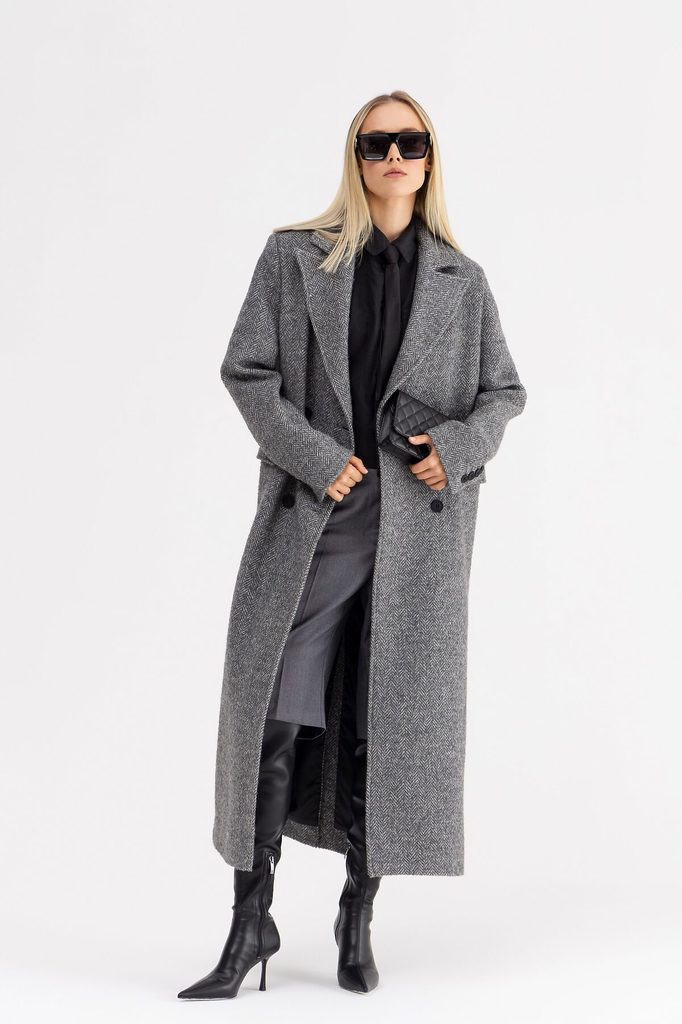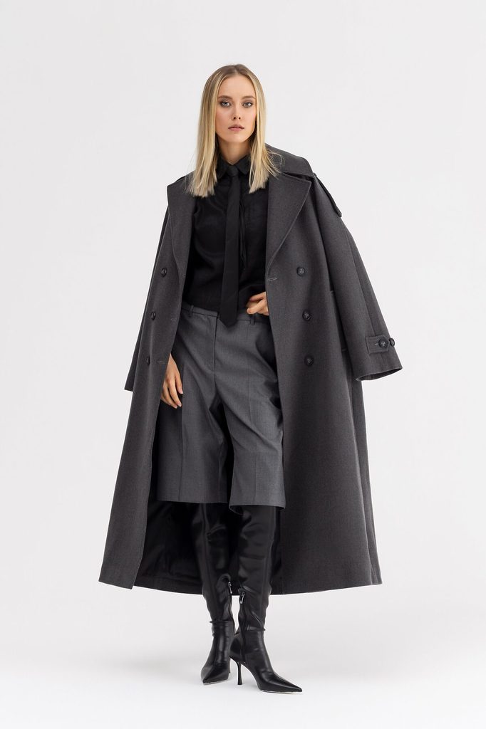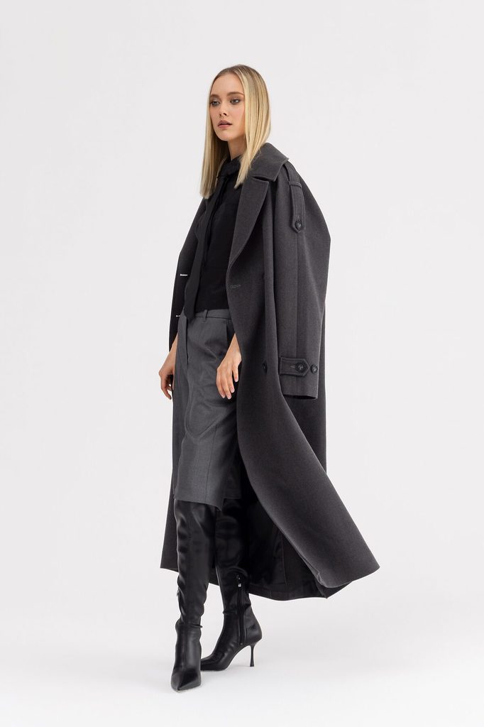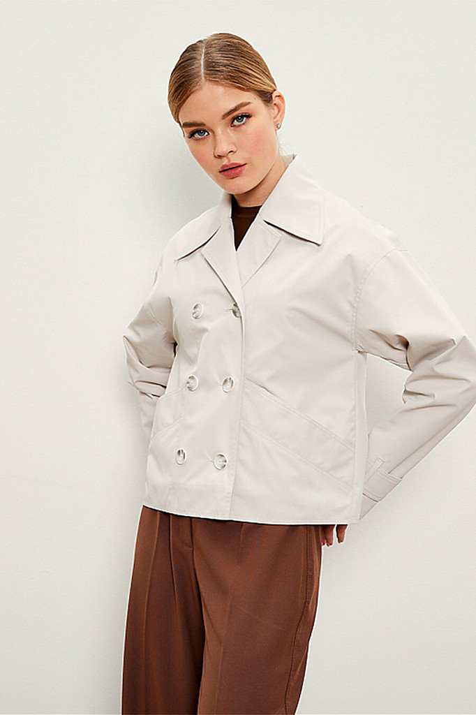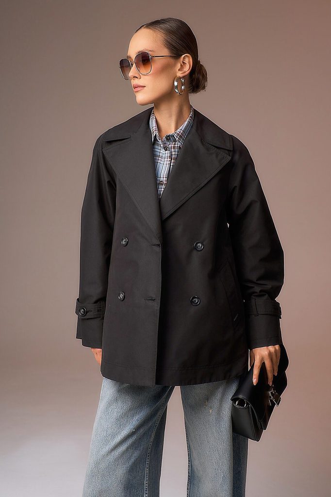 Утепленный двубортный плащ пиджачного типа на пуговицах. Низ рукава оформлен действующими лацканами на пуговицах. В комплекте тонкий пояс из основной ткани. Длина изделия по спинке: 72 см Покрой: прям... Показать описаниеой Тип карманов: прорезные с клапанами. Тип рукава: втачной. Длина рукава: 65 см. Утеплитель: изософт (высокотехнологичный рулонный утеплитель из микроволокна) Плотность утепления: 60 г/м2 Температурный режим: +5°C до +15°C