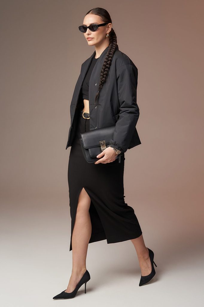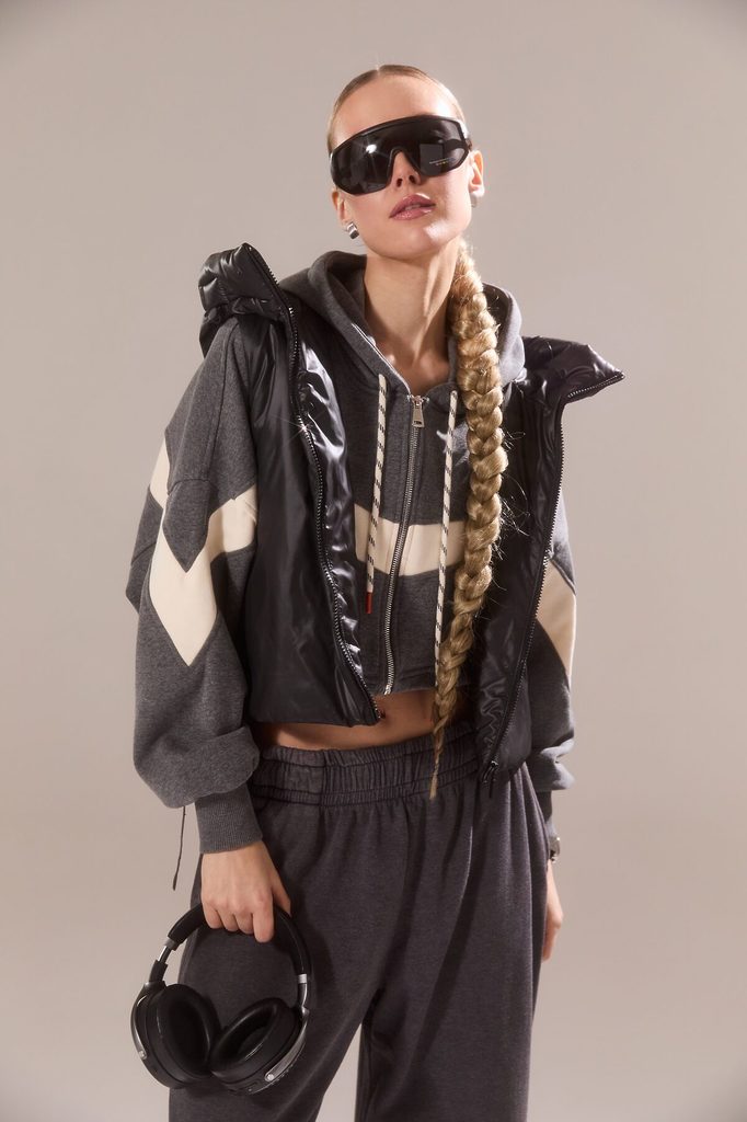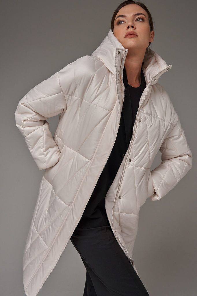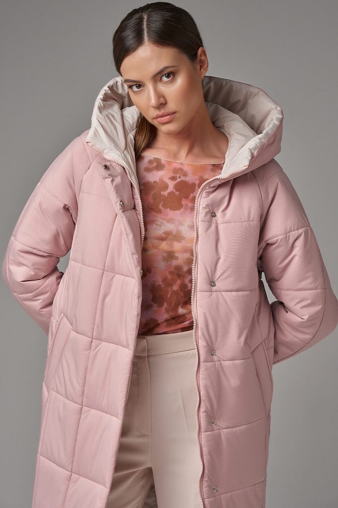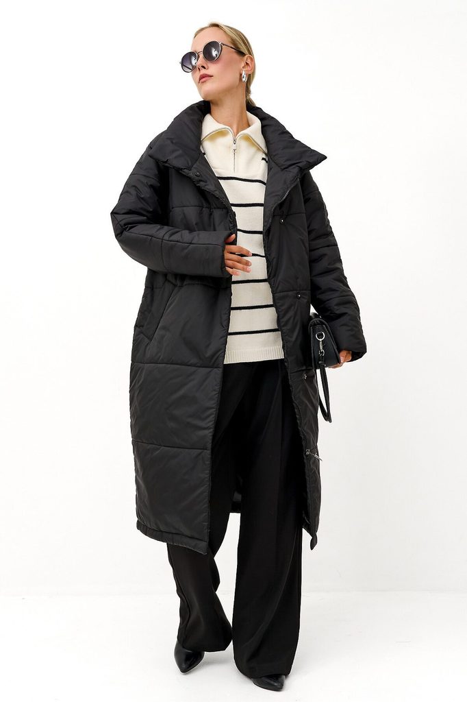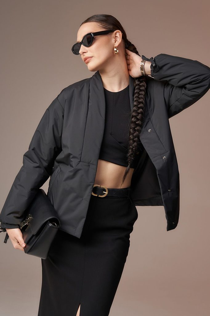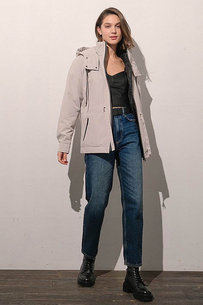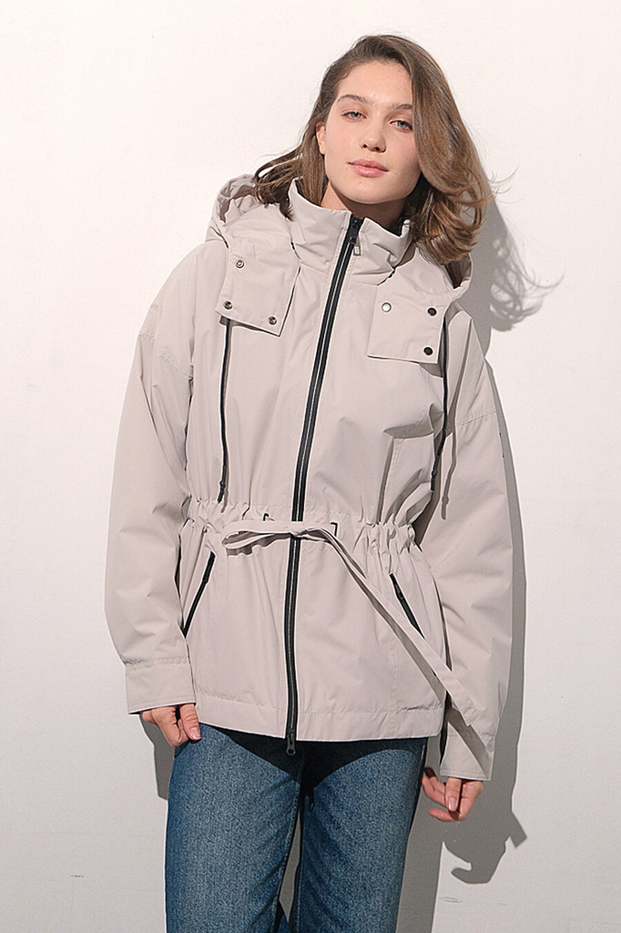 Стильная женская куртка-оверсайз с утяжкой по талии и акцентами в виде черной отделки. В изделии имеется съемный капюшон с утяжкой на шнур с термоусадкой. Рукав со спущенным плечом, низ рукава отделан... Показать описание манжетой со складками. В изделии имеются два функциональных кармана на молнии. Застежка на прорезиненную молнию. Длина изделия-70, длина рукава-64. Ткань-stanley. Утеплитель ORSOTERM от 5 до +15. Рост модели 173-176 см.