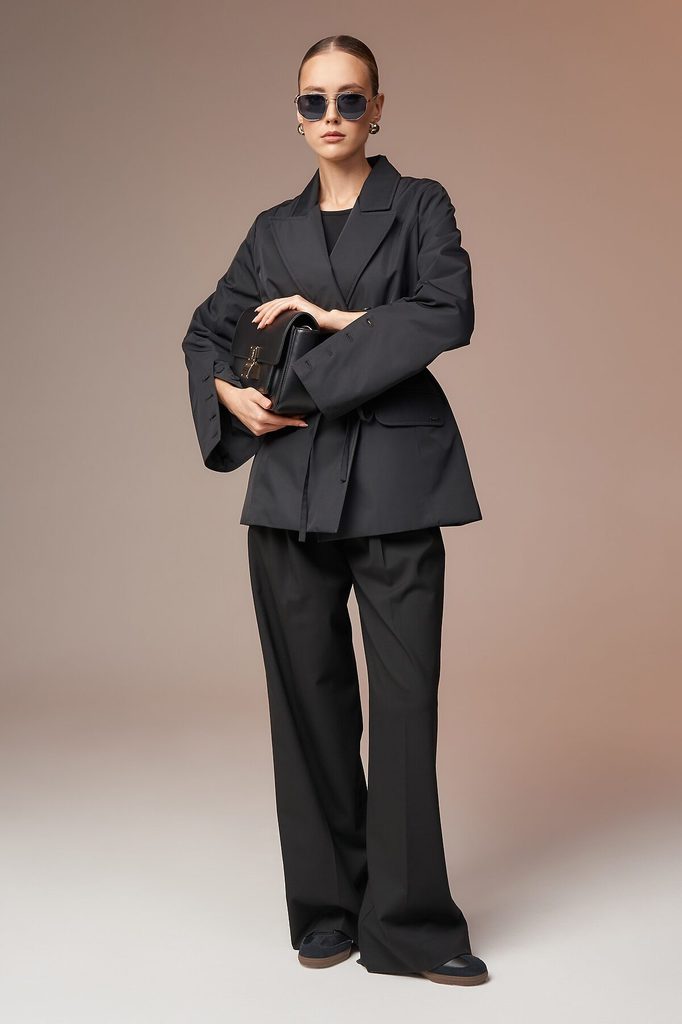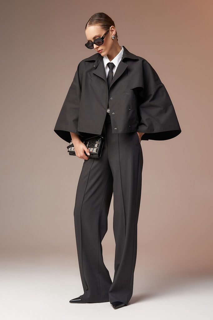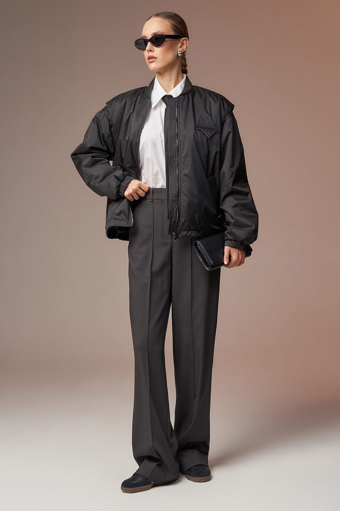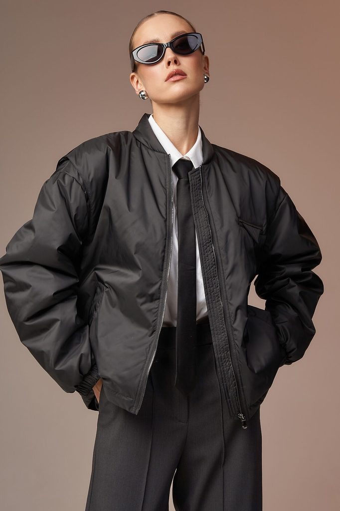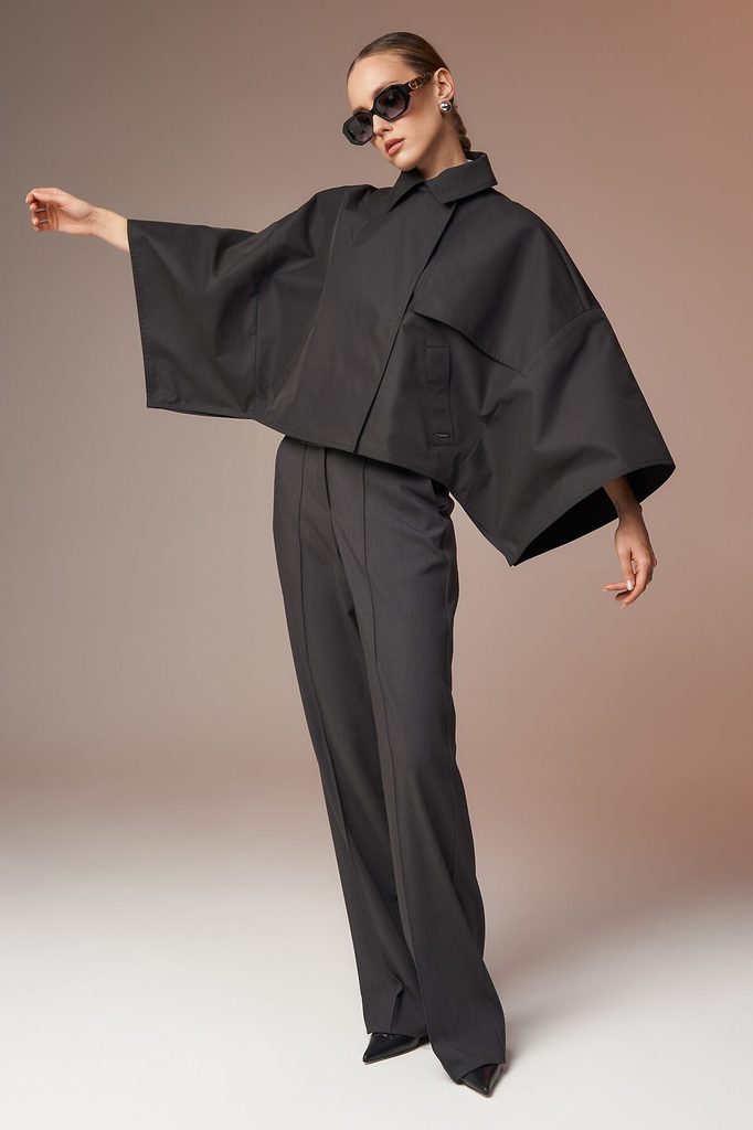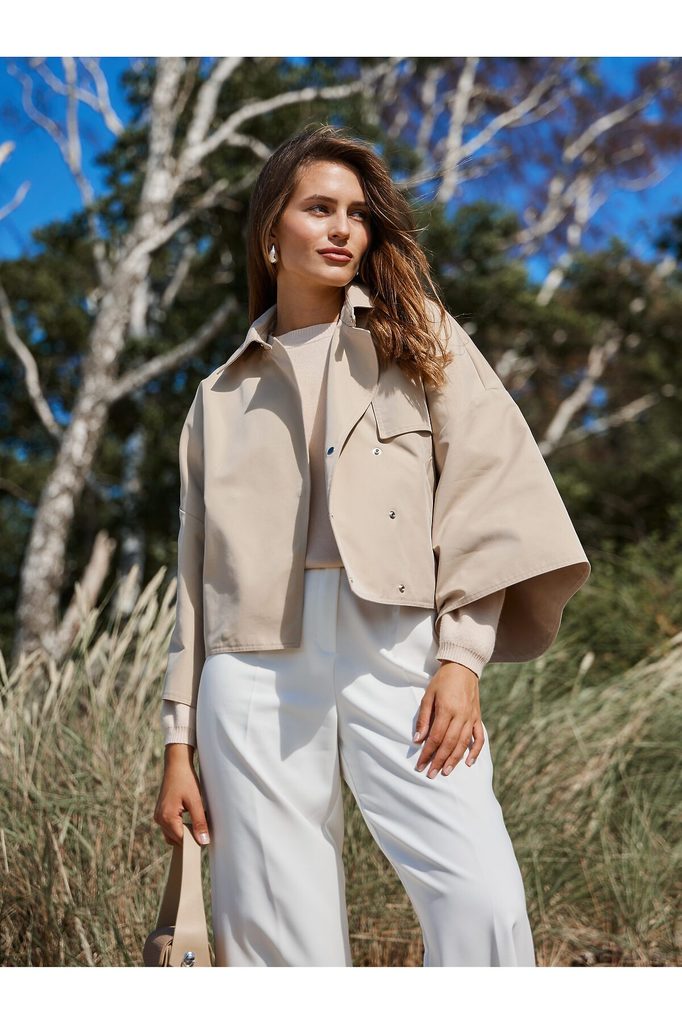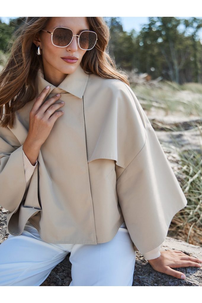 Длина изделия по спинке: 55 см Длина рукава: 64 см Плотность утеплителя: без утепления. Температурный режим: от +18°C до +22°C Покрой: oversize Тип рукава: летучая мышь. Тип карманов: в шве на потайны... Показать описаниех кнопках Состав: 100% полиэстер Материал подкладки: 100% полиэстер Размеры: 42-56 Детали: застежка на молнию в цвет основной ткани. Ткань с водоотталкивающей пропиткой