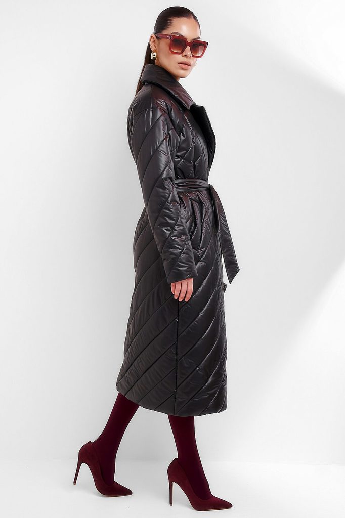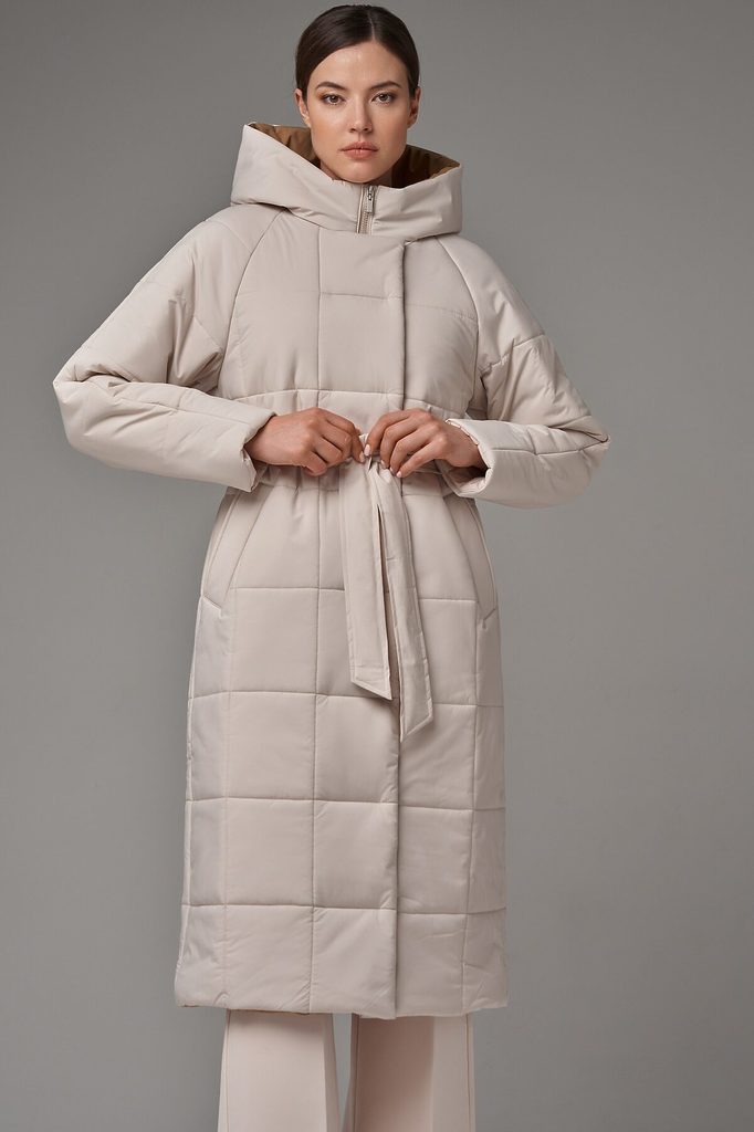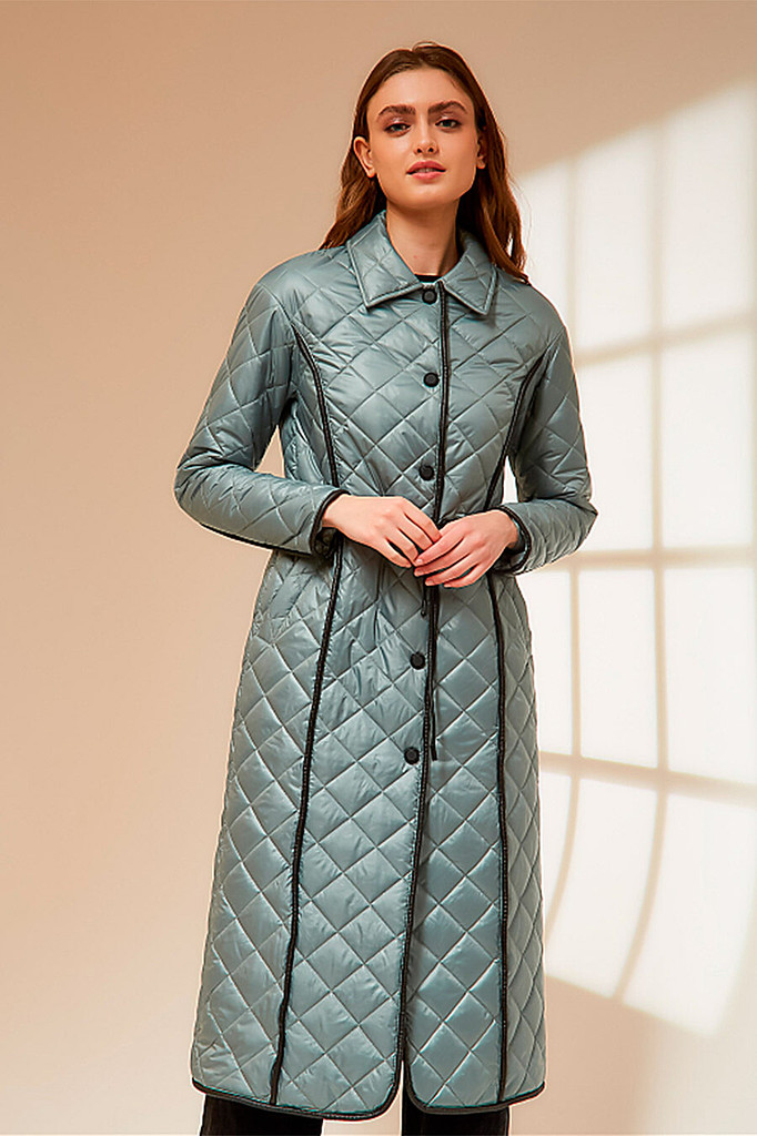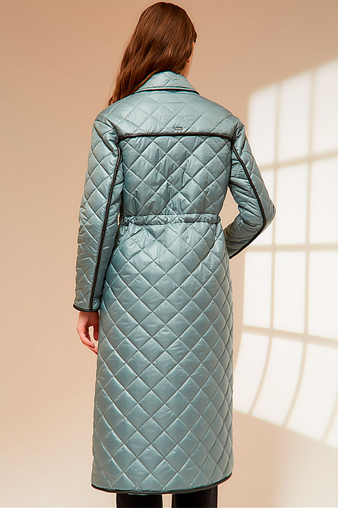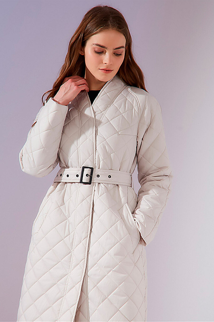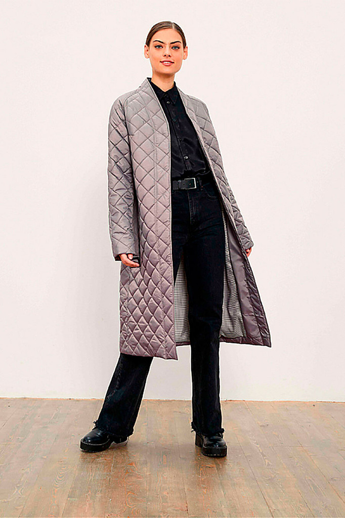 Стеганный плащ прямого силуэта с поясом из основной ткани, рукав реглан. Плащ без капюшона и стойки. Застежка на потайных кнопках. Имеются два функциональных кармана. Ткань матовая из полиэстера, прос... Показать описаниетеганная ромбом. Ткань изделия обработана качественной водоотталкивающей пропиткой. Утепление нового поколения ORSOTERM 100 гр., рекомендуемый температурный режим от +10°C до +18°C. Длина изделия: 110см. Длина рукава: 64 см. Размеры: 42 - 56.