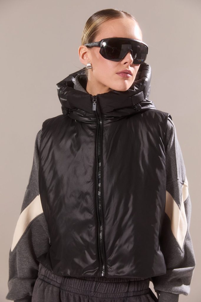 Жилет из глянцевой ткани на тонком утеплении на молнии с втачным капюшоном. Ткань на мембране. По талии есть функциональная утяжка на шнур из основной ткани. Капюшон на утяжке. Длина изделия по спинке... Показать описание: 52 см Покрой: прямой. Утеплитель: изософт (высокотехнологичный рулонный утеплитель из микроволокна) Плотность утепления: 100 г/м2 Температурный режим: +10°C до +18°C
