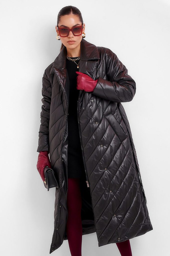 Классический стеганный плащ прямого силуэта с высокой стойкой. По спинке располагается пата, создающая эффект приталенности. Рукав покроя реглан с отворотом по низу. Удобные карманы на листочках. Изде... Показать описаниелие двубортное, застегивается на кнопки и центральную молнию. Ткань JS-30, утепление ORSOTERM (от +5°C до +15°C). Размерный ряд: 42- 56. Длина изделия- 108см., длина рукава-65см. Изделие выполнено цветах: черный, темно-пурпурный.