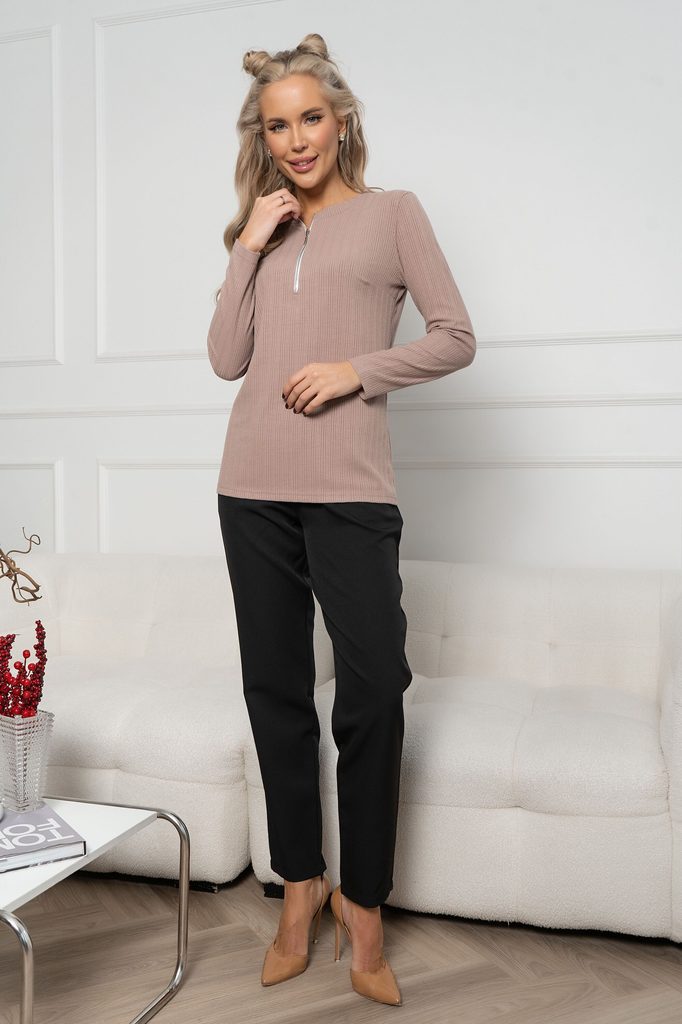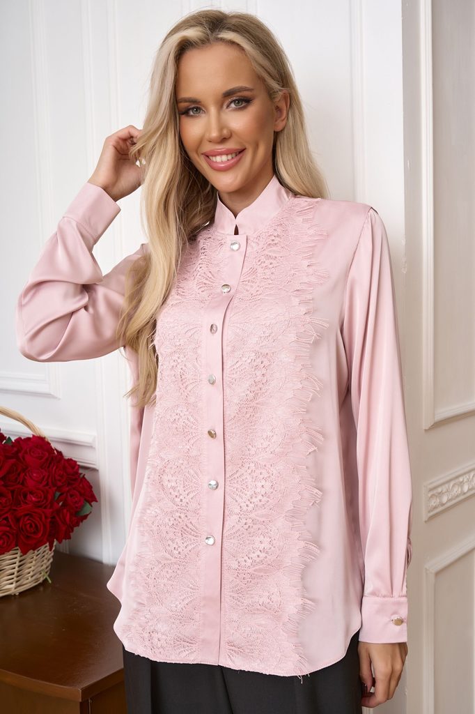 Блузка нежного цвета пудры – это мягкий, приглушенный оттенок розового, который напоминает легкий налет пудры на коже. Блузка выполнена из качественного трикотажа, что обеспечивает комфорт и мягкость ... Показать описаниепри носке. Рукава этой блузки украшены изящным кружевом, которое добавляет образу элегантности и романтичности. Манжеты на рукавах подчеркивают аккуратность кроя и придают завершенность общему виду. Модель блузки полуприлегающая, что позволяет сохранить баланс между свободой движений и утонченностью силуэта. Такой крой выгодно подчеркивает достоинства фигуры, не сковывая ее.