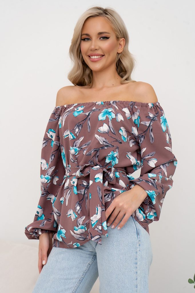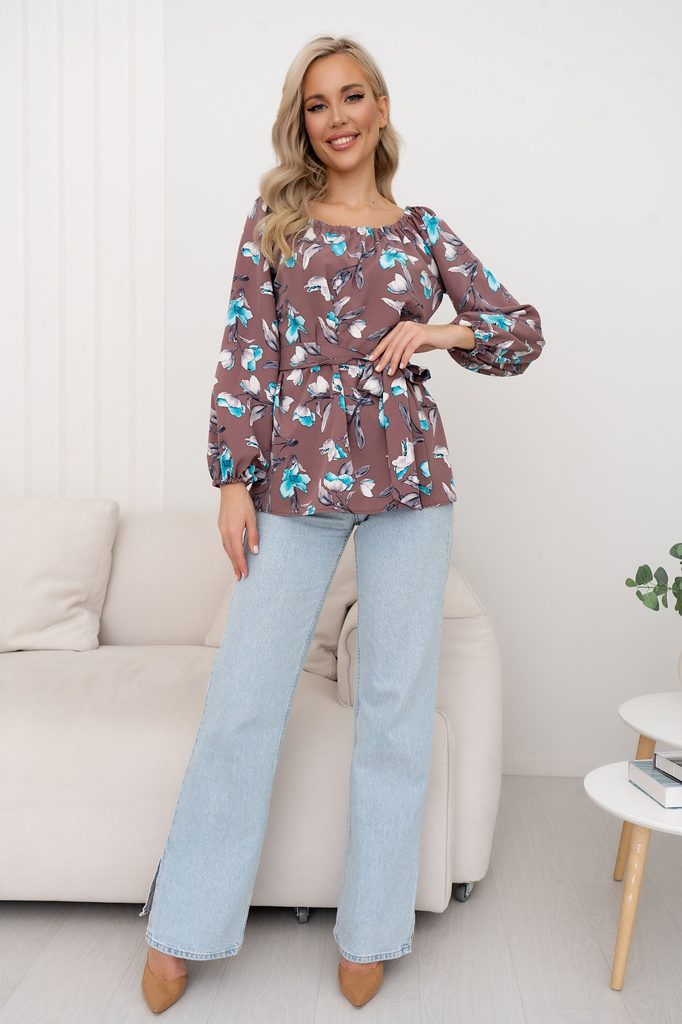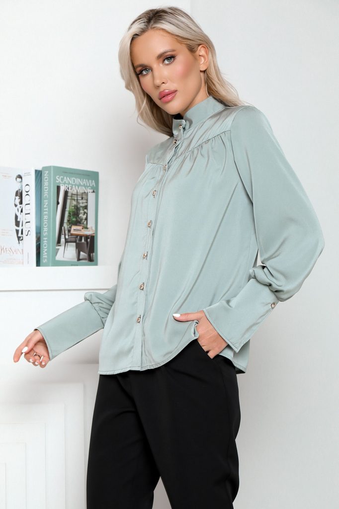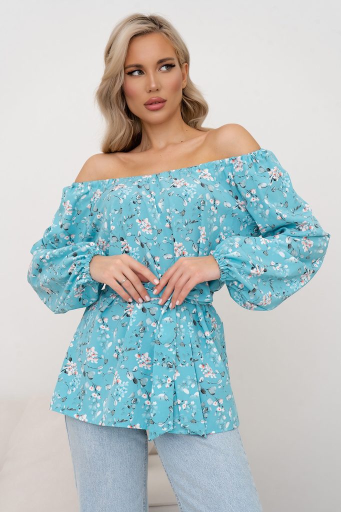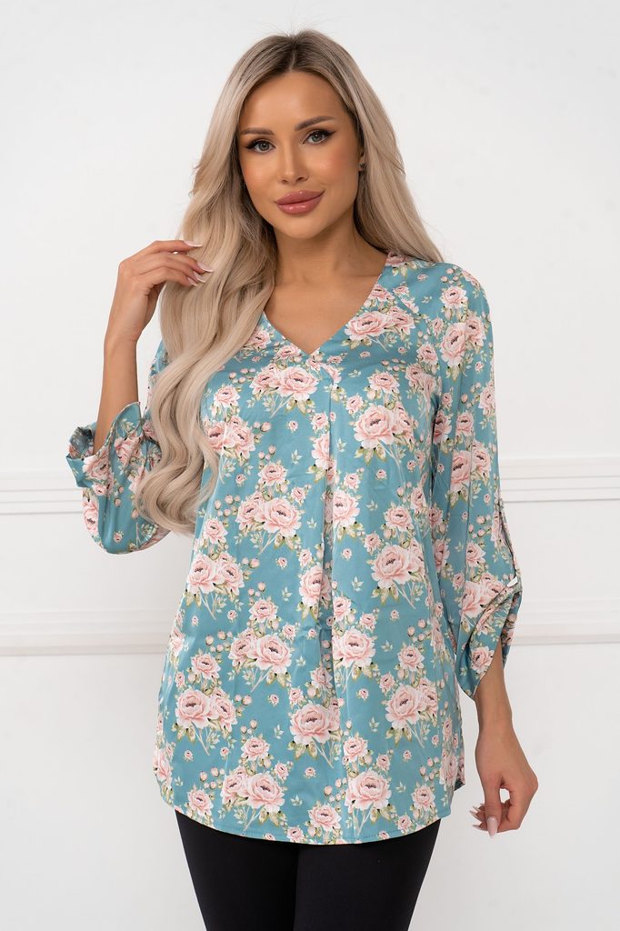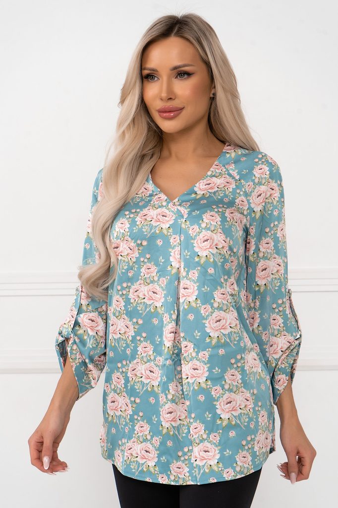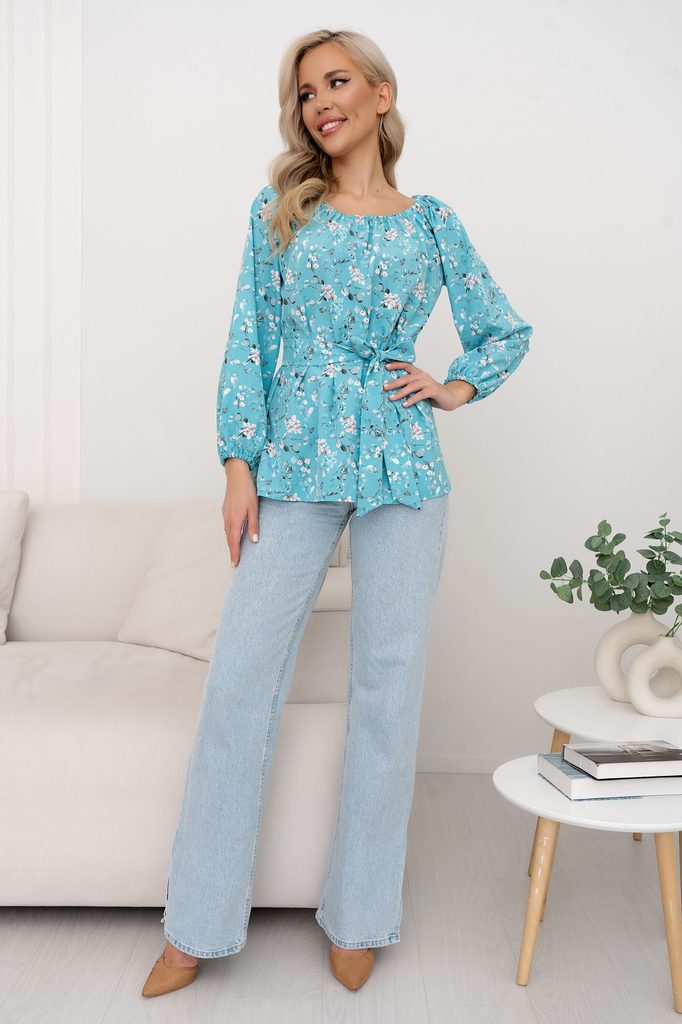 Блузка цвета ментола украшена нежными цветами, создающими атмосферу свежести и легкости. V-образный вырез подчеркивает зону декольте, добавляя образу женственности. Рукав выполнен в стиле "спущенного ... Показать описаниеплеча", что придает модели свободный и расслабленный вид. Его край аккуратно собран на пуговицу, что добавляет изделию утонченности и завершенности. Длина рукава составляет 3/4, делая акцент на запястье и позволяя сочетать блузку с различными аксессуарами. Этот наряд отлично подойдет как для офиса, так и для прогулок в городе, привнося в образ нотку романтики и весеннего настроения.