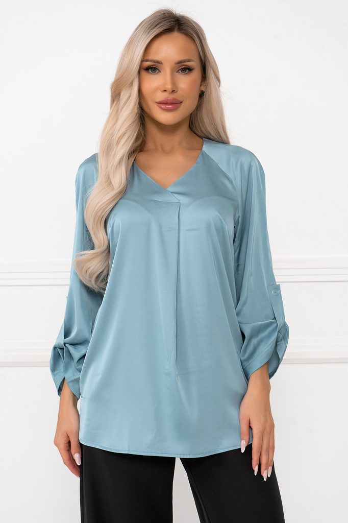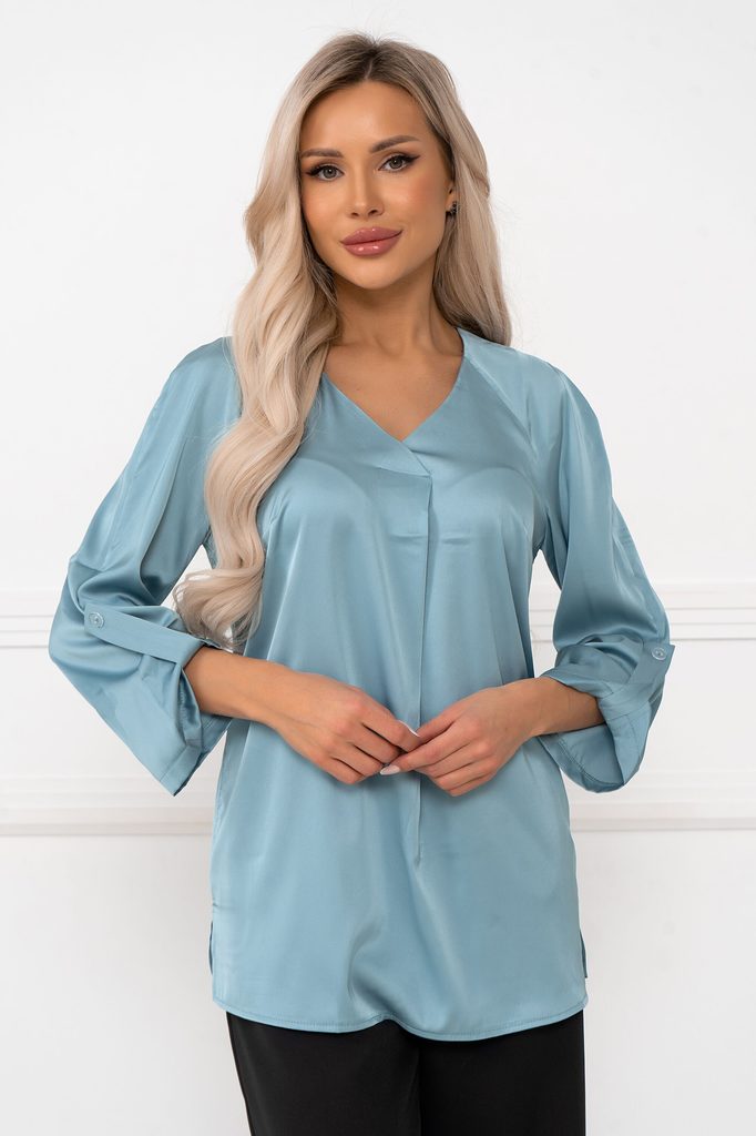Блузка с V-образным вырезом привлекает внимание своей элегантностью и женственностью. Рукав выполнен в стиле "спущенного плеча", создавая легкий и воздушный силуэт. Длина рукава составляет 3/4, а его ... Показать описаниекрай аккуратно собран на пуговицу, придавая изделию утонченности и завершенности. Такая блузка станет идеальным выбором для создания как деловых, так и повседневных образов, добавляя нотку шарма и стиля в любой лук.