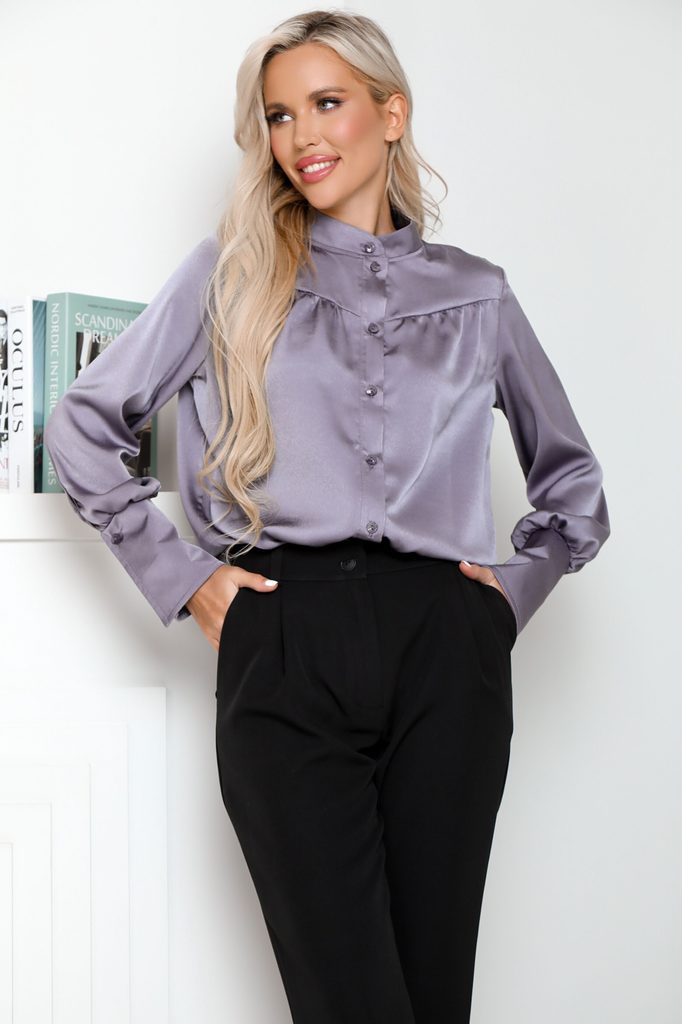 Эта атласная рубашка лилового цвета добавит изысканности и стиля вашему образу. Сочетание струящейся ткани и насыщенного оттенка создаст впечатляющий эффект