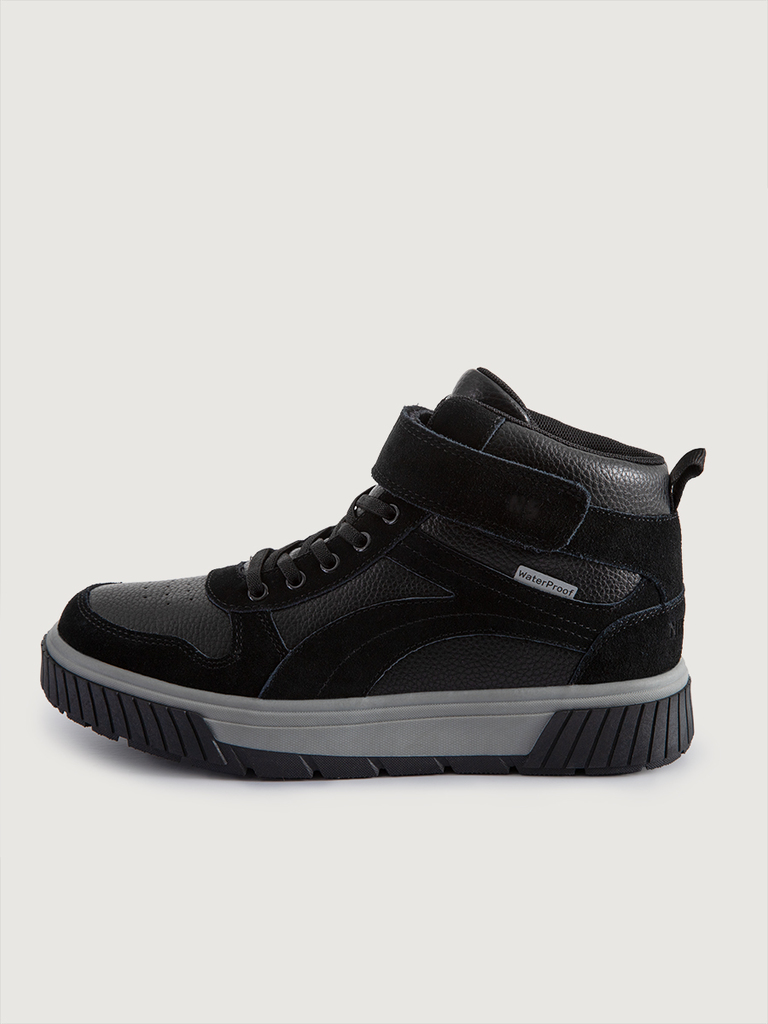 Сезон: ВЕСНА-ОСЕНЬ Пол: Мальчик Категория товара: Обувь Цвет: черный Мембранная одежда: Нет Ткань верха: экокожа (PU)+кожа (натуральная замша) Подкладка: текстиль (100% полиэстер) Температурный режим:... Показать описание от 0°С до +10°С Утеплитель: без утеплителя Стильная модель ботинок от бренда NIKASTYLE СНИКЕРЫ для любой осенне-весенней погоды. Ботинки изготовлены из прочных и качественных материалов: натуральная замша и высококачественная экокожа - гипоаллергенный и воздухопроницаемый материал. Технология WATERPROOF с использованием мембранных материалов, которые не пропускают влагу внутрь обуви, но позволяют ногам дышать и подойдут для влажной и слякотной погоды. Внутренняя подкладка обеспечивает тепло и комфорт, что особенно актуально в холодное время года. Анатомическая форма стельки способствует правильному формированию свода стопы, равномерно распределяет нагрузку, уменьшает усталость, обеспечивает правильное развитие стоп. Липучка и эластичные шнурки позволяют точно настроить полноту и обеспечивают легкое одевание. Ботинки имеют спортивный дизайн, что делает их универсальными для школы и спортивных мероприятий. Подошва с протектором выполнена из термопластичной резины (TPR), обладает высокой износостойкостью и хорошей амортизацией, уменьшая нагрузку на ноги. Ботинки оснащены съемной стелькой со специальной маркировкой, позволяющей правильно подобрать размер. Рекомендуем вынуть стельку и приложить к ней ногу ребенка - пальцы должны располагаться в обозначенной для этого области. При выборе обуви для ребенка, длина стельки должна быть примерно на 1-1,5 см больше, чем длина стопы. Отличный вариант для прогулок и активного отдыха весной или осенью в диапазоне t от 0 C до +10 С.