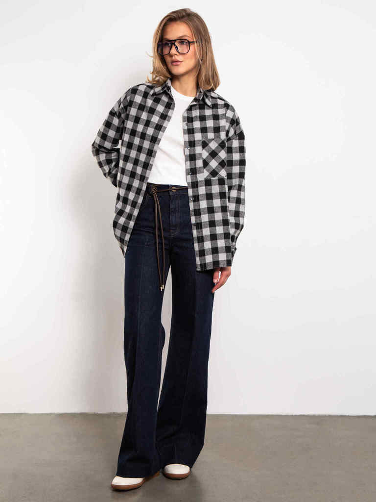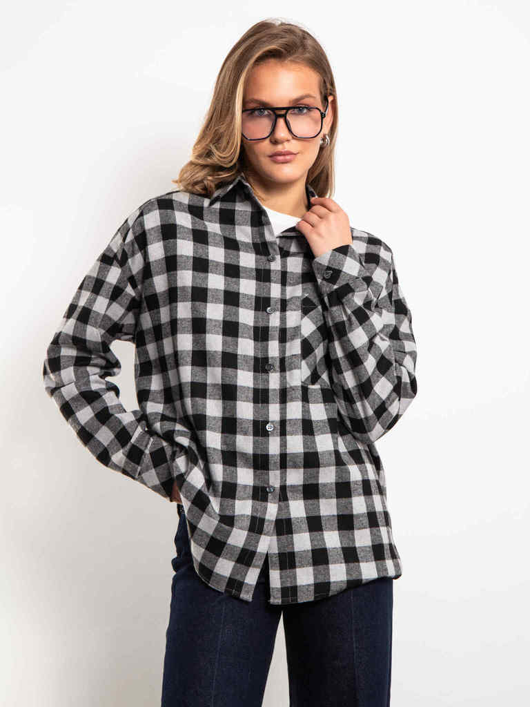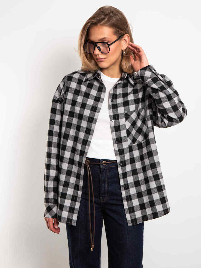 Рубашка в клетку серо-черного цвета